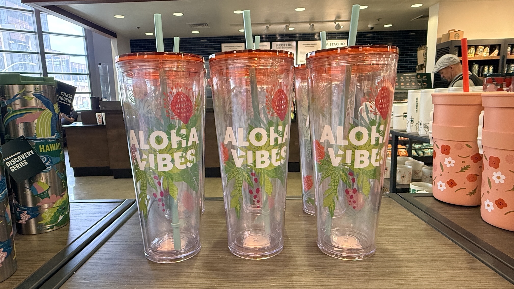 ここでも新作のハワイ限定タンブラーを発見しました。「ALOHA VIBE(アロハな感じ)」と書かれていて、お土産にもいいかも。