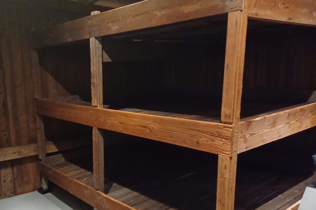 強制収容所へ移送される際の貨車、アウシュビッツ強制収容所に実際にあった収容者の三段ベッドをはじめ、各地の強制収容所で何が行われたかについての展示があります。当時のショッキングな映像はモニターの周りに箱のような囲いがあり、覗き込まなければならないので、小さいこどもには簡単には見えないよう配慮されています。強制収容所に到着したユダヤ人たちが選別され、労働に適さないとみなされたグループがガス室へ送られるまでのプロセスをジオラマで紹介する展示は、俯瞰(ふかん)で見えるだけに、収容者が途中で逃げる余地が無く、まるでオートメーション工場のような様相に、一層恐ろしさを感じます。
