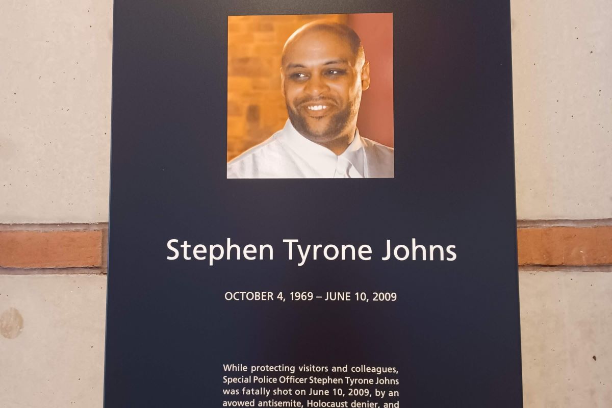 見学を終えて博物館の出口へ向かうと、壁に小さな慰霊パネルがありました。2009年6月に当博物館にライフルを持った88歳の男が侵入し発砲、入口を警備していた警備官が撃たれて亡くなった事件があり、その犠牲になった警備官を追悼するものでした。犯人がホロコースト否定主義の人物だったことから、21世紀の現在もまだホロコーストの問題は完全には終わっていない、ひとつの象徴にも思えました。
