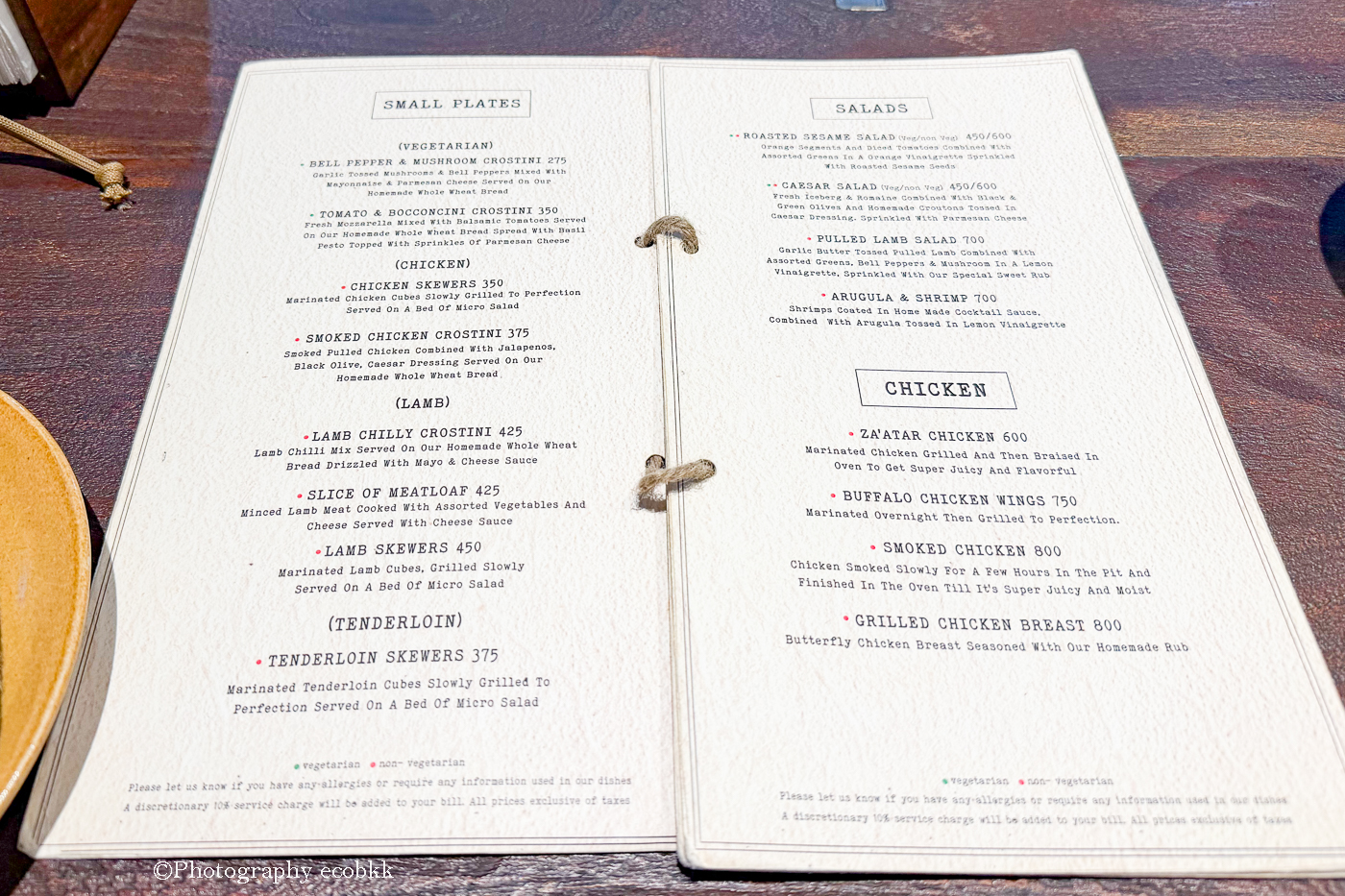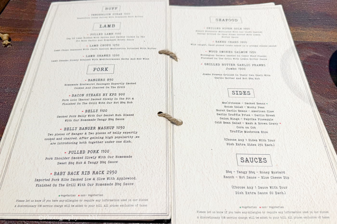 「The Pit Gurgaon~SMOKED&GRILLED」で提供される水牛のステーキの部位はテンダーロイン(ヒレ肉)なので柔らかい部位だと思いますが、「水牛」のお肉なので、日本人にとっては思っているより少し硬く感じるでしょう。提供されたナイフの切れがもう少しよければ印象も違ったかもしれませんが、カットに時間がかかったこともあり、2人で1枚で十分満足できました。味付けやディップ、サイドディッシュはとてもおいしかったです。なお、水牛以外のお肉のメニューも豊富でした。
