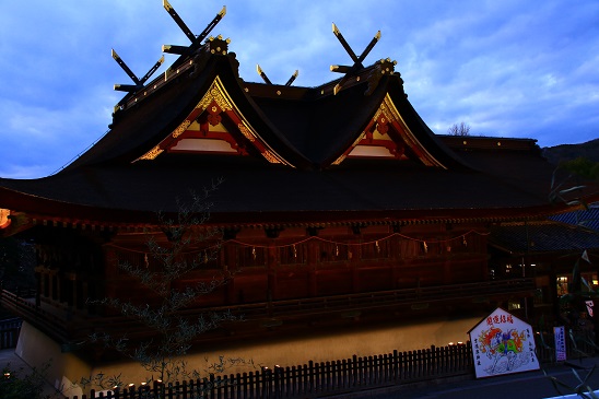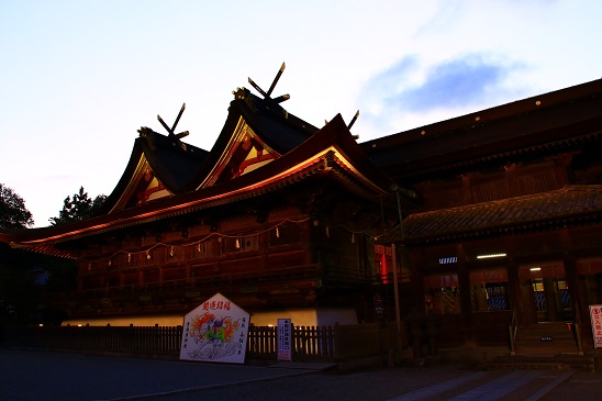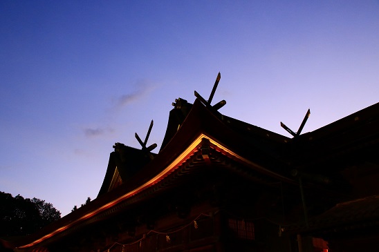 夜の帳が落ち始めると本殿が光に包まれ始めます。