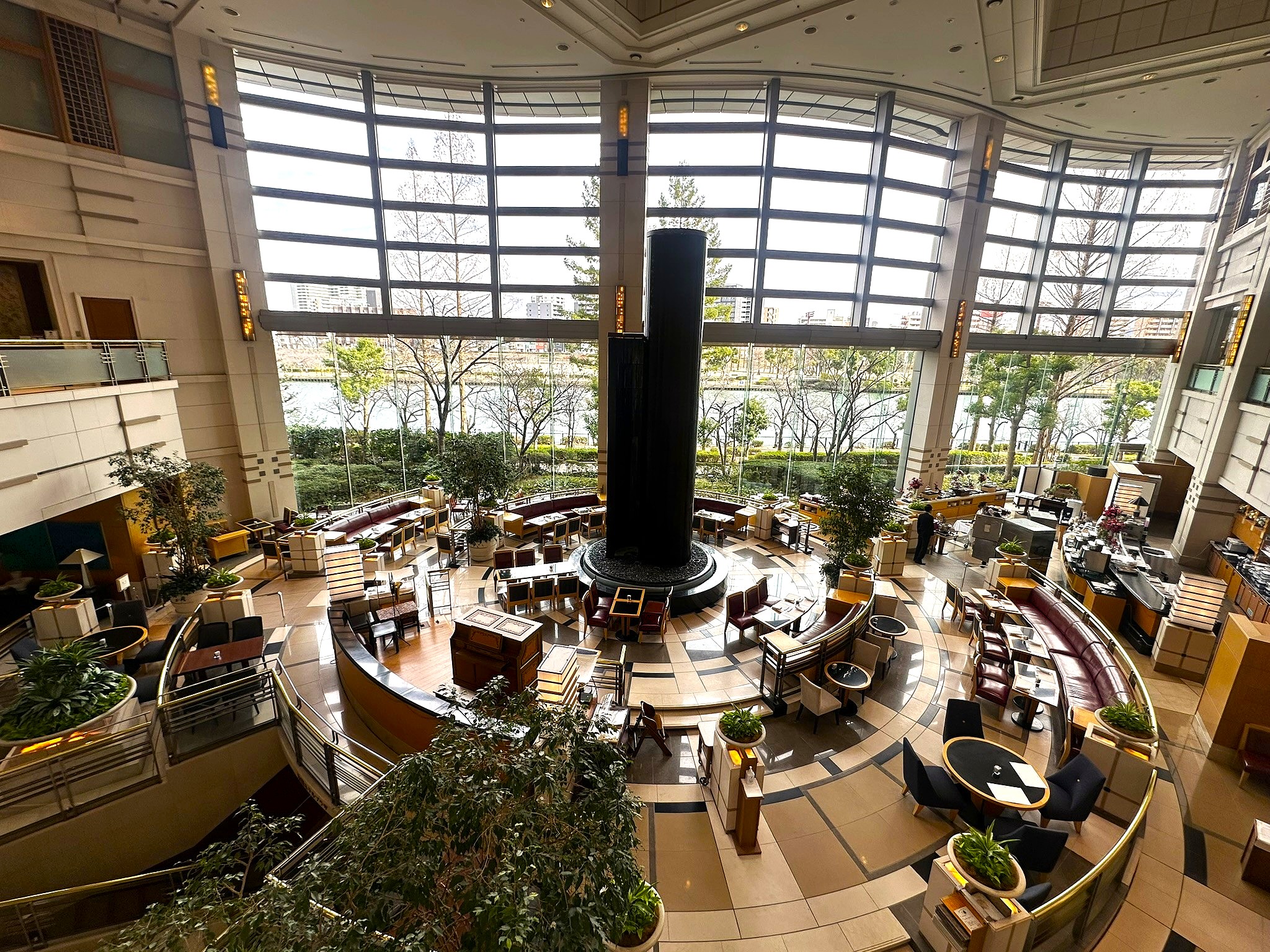 ブフェ&ラウンジ「ザ パーク」は、大きな窓から自然光が差し込む開放的な空間。賑やかすぎず、かといって静かすぎることもなく、大人が落ち着いて過ごせる心地よい雰囲気が保たれています。