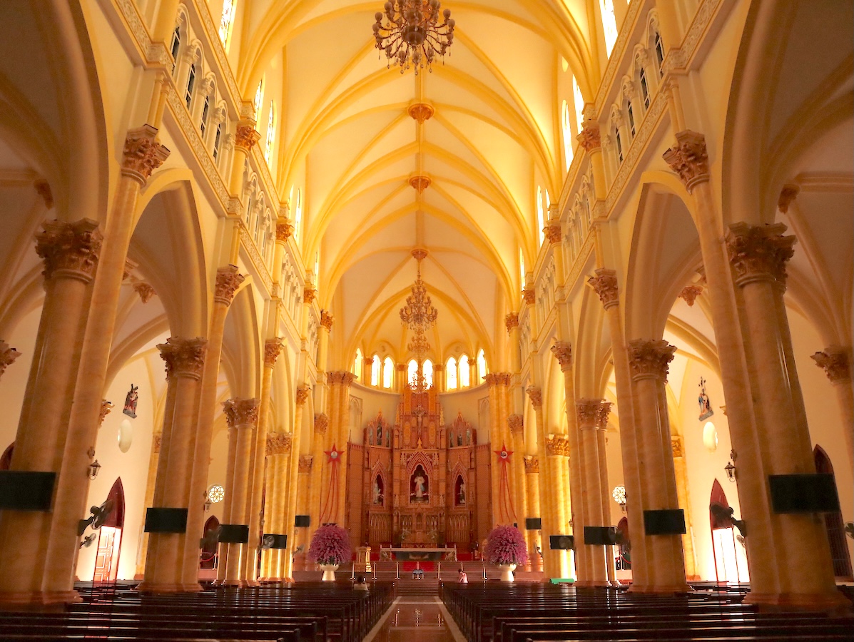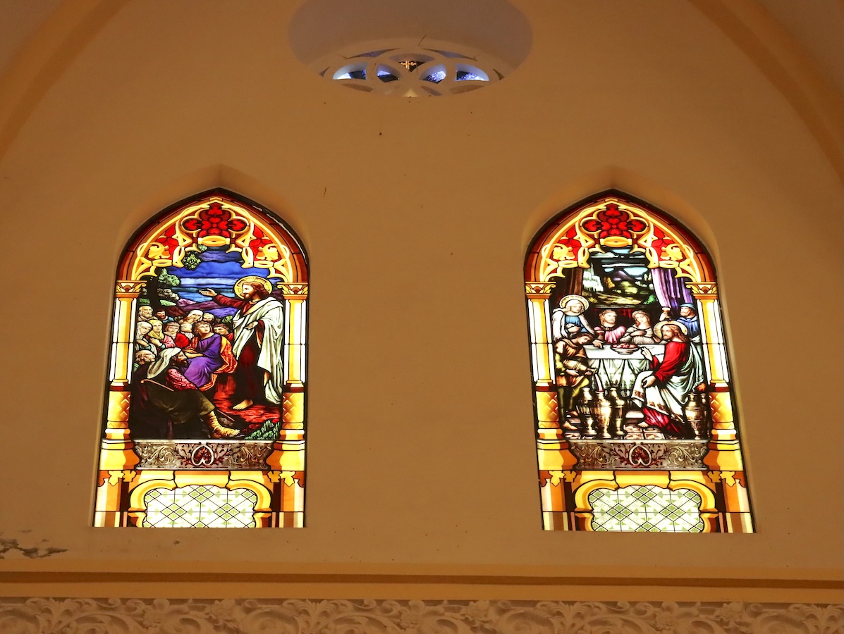 教会の中に入ると、その大きさに改めて驚かされます。ゴシック様式で、ステンドガラスも美しい。信者が大勢集まるミサは荘厳で迫力があることが容易に想像できる、そんな場所です。