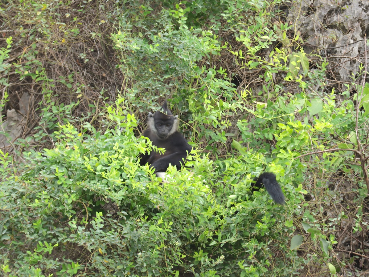 チケットを購入し、いざ船着場へ。小舟に乗って湿地帯を巡ります。漕ぎ手のおばちゃんの櫂(かい)を漕ぐ音、水の流れる音、鳥のさえずりしか聞こえない、ゆったりとした時間が流れます。ヴァンロン自然保護区にはシンボル的な動物が住んでいます。絶滅危惧種に指定されているデラクールラングールというお尻が白い猿で、運が良ければ見ることができます。私は約3年前にもここに来たことがありますが、残念ながらその時は猿を見ることができませんでした。なので、今回こそは見てみたい、と思っていました。