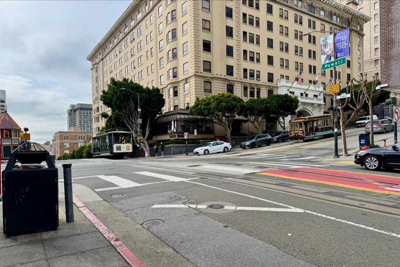 いよいよ、この二つの坂道を踏破するルートは、旅行者には便利なユニオンスクエアから出発。ロシアン・ヒルの華やかな景色から住宅街のポトレロ・ヒルまで。車やライドシェアを使わずに、ケーブルカー&ミュニを乗り継いで、街の日常を眺めながら移動時間は約40分のコース。今回はノブヒルからケーブルカー乗車したので若干補足します。