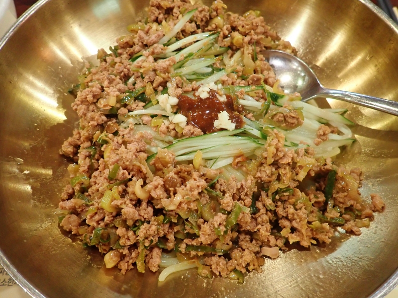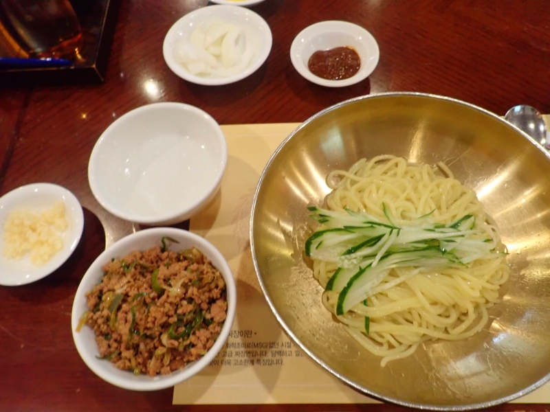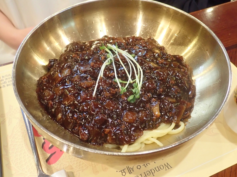 こちらも化学調味料なしで100年前のレシピを再現したチャジャンミョン。ボリュームいっぱい、玉ねぎなどの野菜いっぱいでコクがあり、おいしいです。