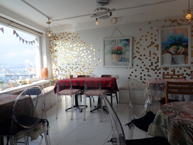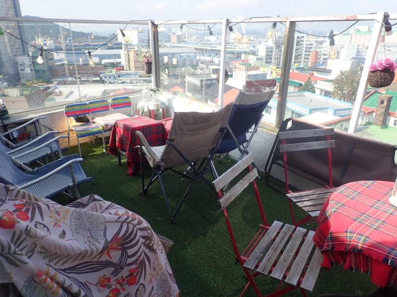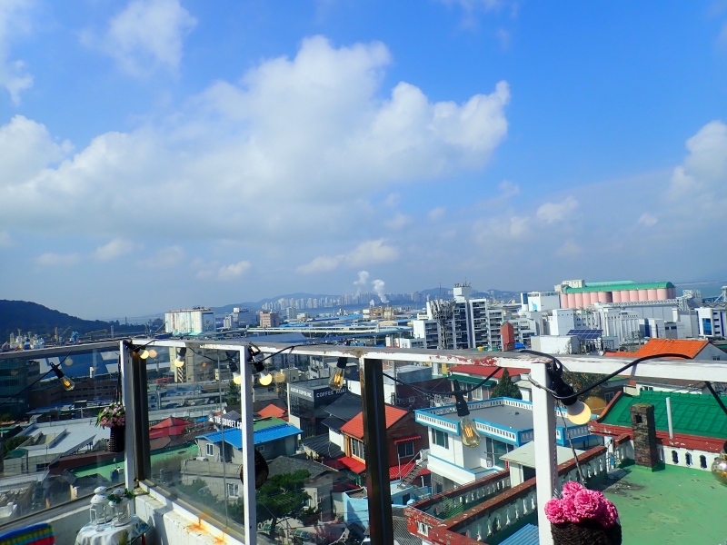 続いて、萬多福からほど近く、坂の上にあるザ・サンセットカフェ(더선셋카페)へ行ってみました。その名の通り、夕方に訪れると夕焼けが美しく見えるカフェだそうです。筆者はお昼ごろに訪れたので、見ることはできませんでしたが、昼でも景色が本当に素晴らしいです。ルーフトップ、3階、2階からも仁川港が見えます。
