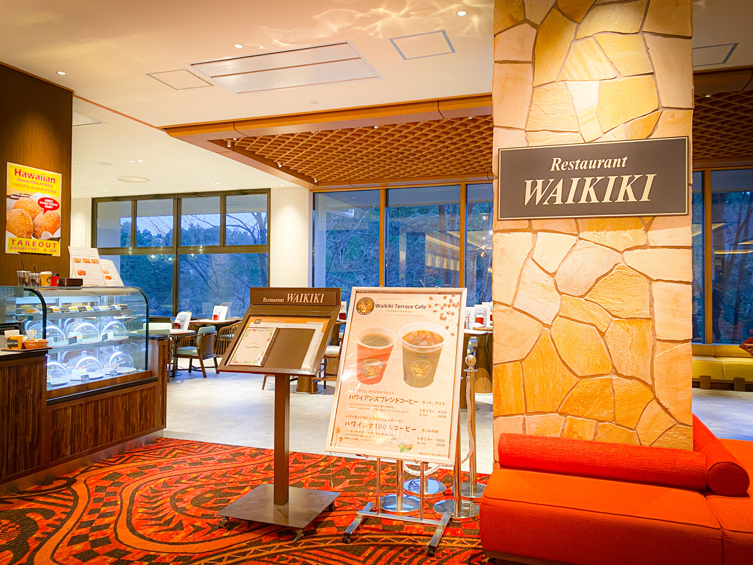 他にも、ホテルハワイアンズの1階ロビーにあるレストラン「ワイキキテラスカフェ」が一新。コーヒーやハンバーガー、カラフルなケーキなどが揃い、見て楽しい、食べて美味しい空間に生まれ変わりました。
