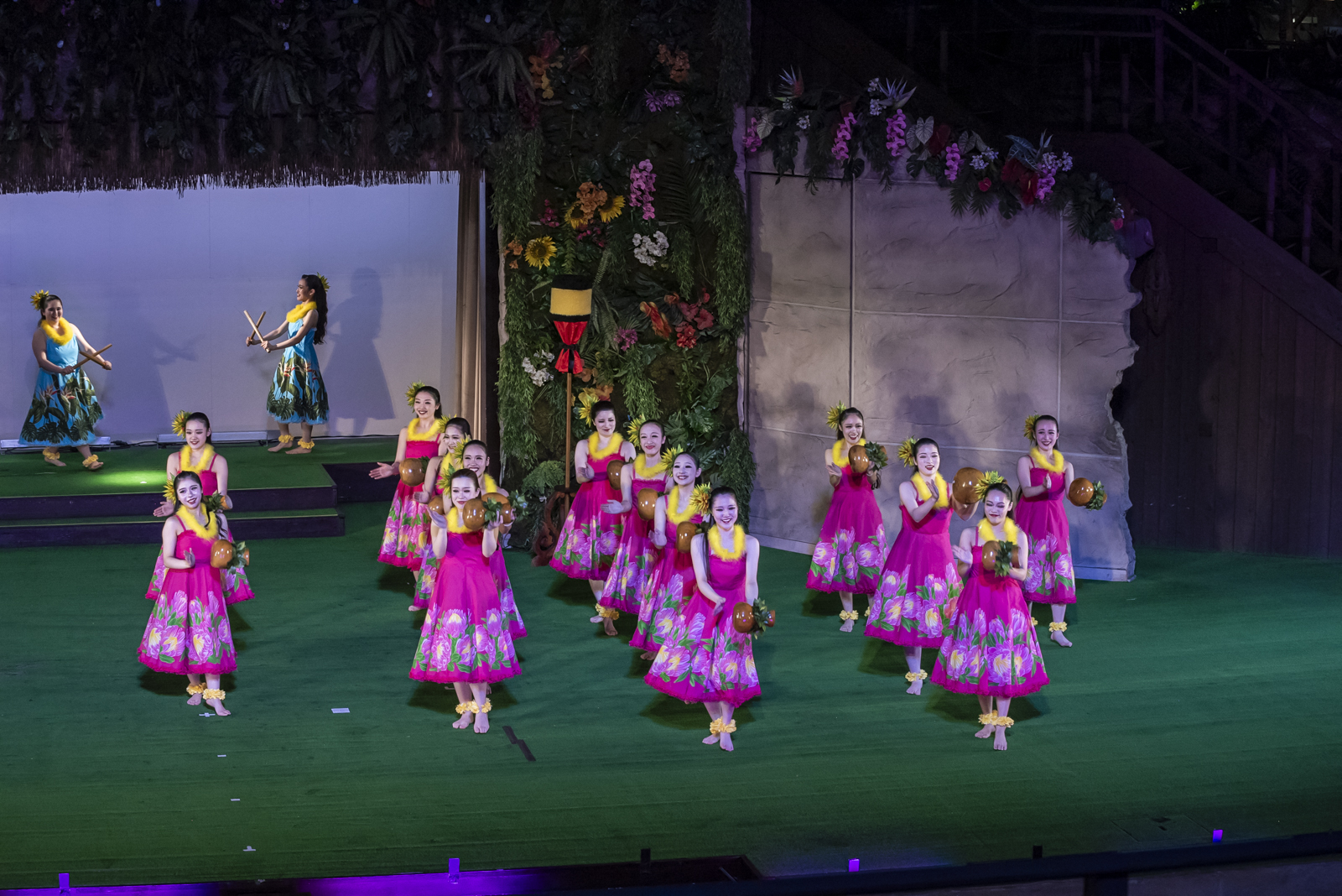 ハワイ、タヒチ、サモアなどの演目で構成され、ハワイ文化に根付く「アロハ」の精神を大切に、全ての人に感謝の気持ちを伝えています。