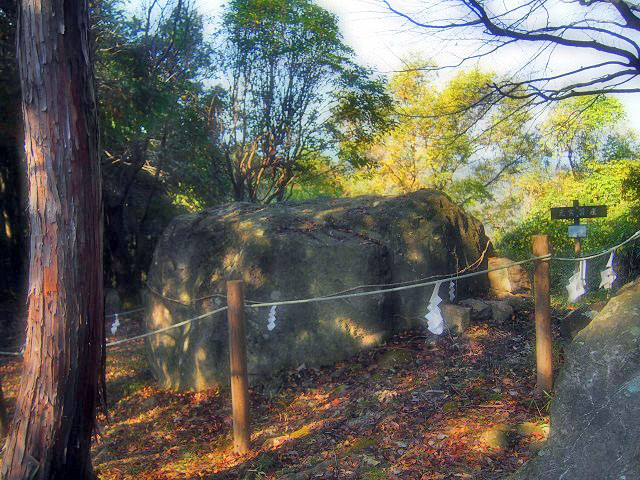 すぐ近くには幽玄な雰囲気をたたえる元宮と呼ばれる磐座(いわくら)がありました。元宮というのは、吉備津彦神社の社殿が建てられる以前の神社の姿のことで、おそらく備前国ができる前からあった神社ではないかと思います。