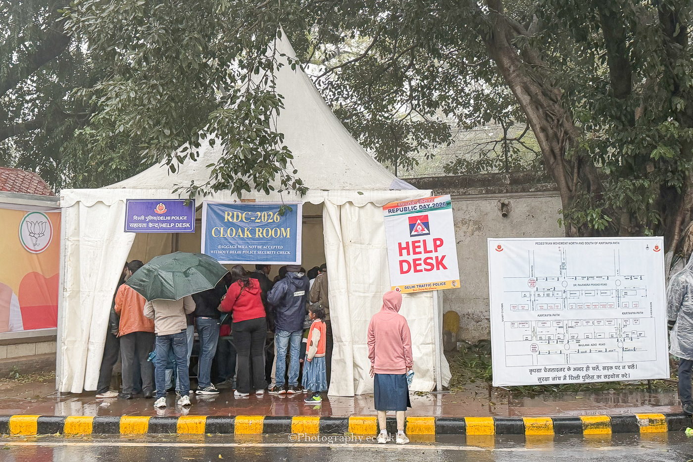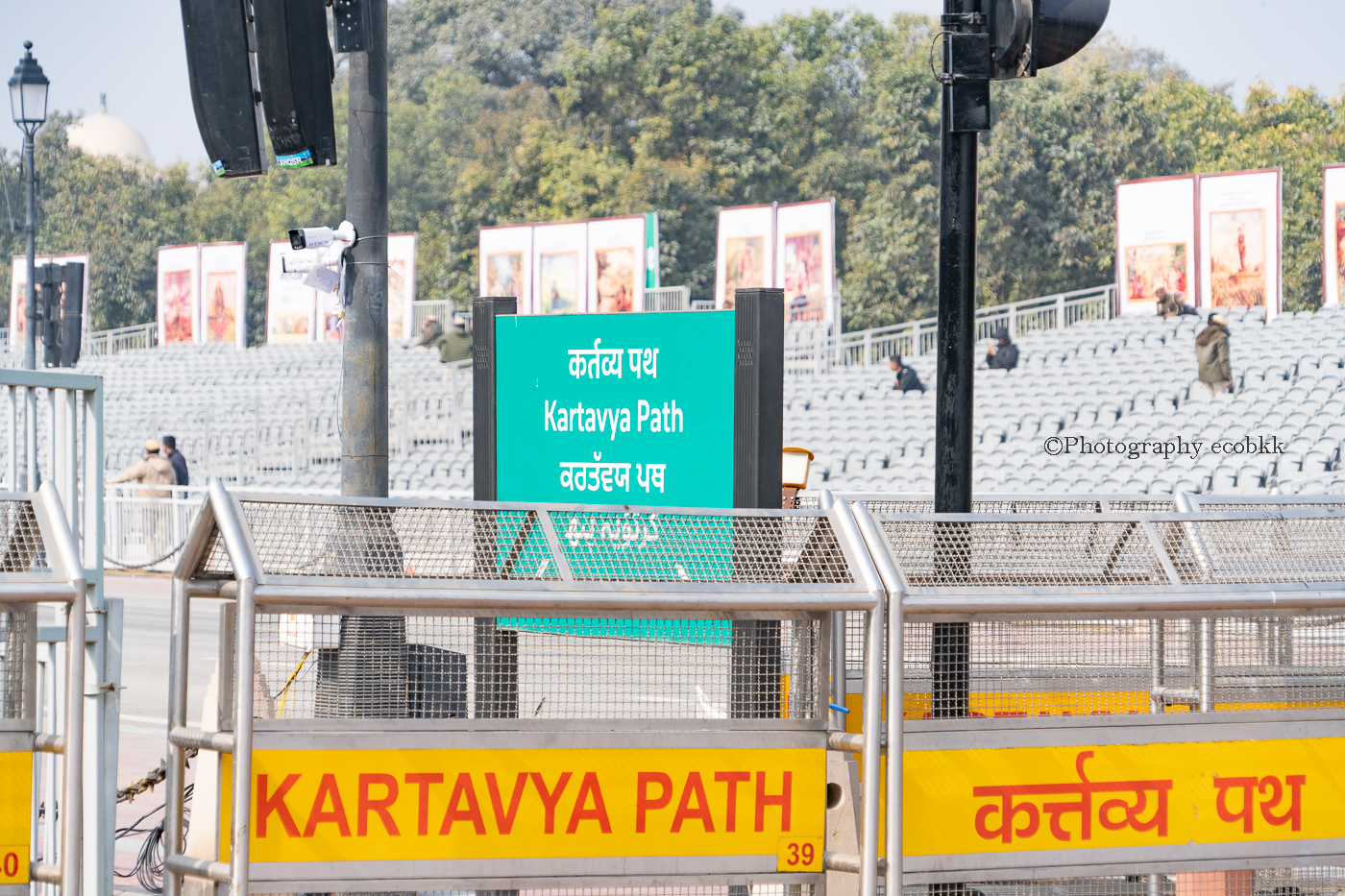 本番仕様ではないインド共和国記念日パレードの予行練習が行われる日(2026年1月17 日、19日、20日、21日)は、事前申請しなくてもパレードのリハーサルは見学可能でしたが、事前に申し込むことでインド門のすぐ近くの座席のあるエリアからの観賞も可能になるようでした。本番仕様のパレードの予行練習が行われる日(2026年1月23日)は、立ち入り禁止エリアが広くなり、事前申し込みしないとパレードを観賞することもできなさそうでしたが、こちらも事前申し込みすることで座席のあるエリアからの観賞が可能でした。