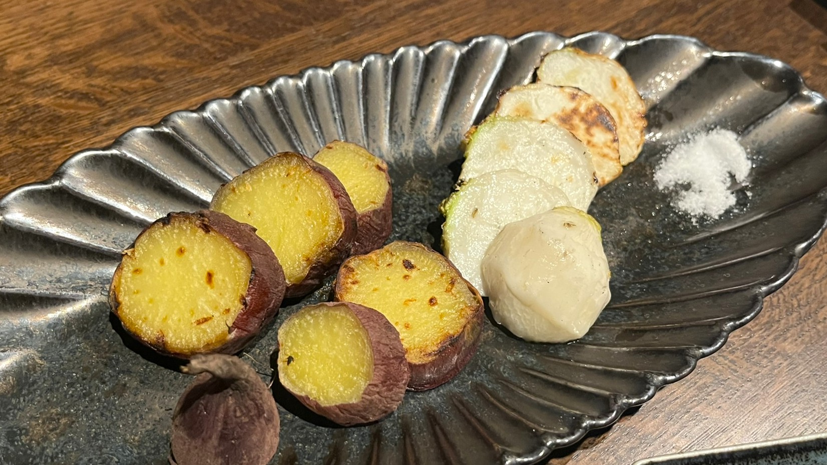 備長炭焼き。お隣、御代田産のさつまいもとかぶを塩で頂きます。シンプルでほんとに美味しい。出汁巻きもふわっふわ。ついつい日本酒を飲みすぎてしまいます。ちなみにこの日のメニューに載っていなかった日本酒は「信州亀齢(しんしゅうきれい)」と「夜明け前」どちらも長野のお酒ですが、それぞれ素晴らしい。もちろんメニューに載っている日本酒もたくさん頂きました(←飲みすぎ)