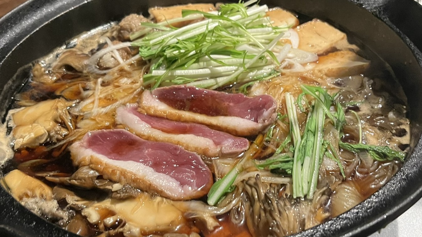 メインは鴨すき。たっぷりのネギと食べる鴨は最高です。