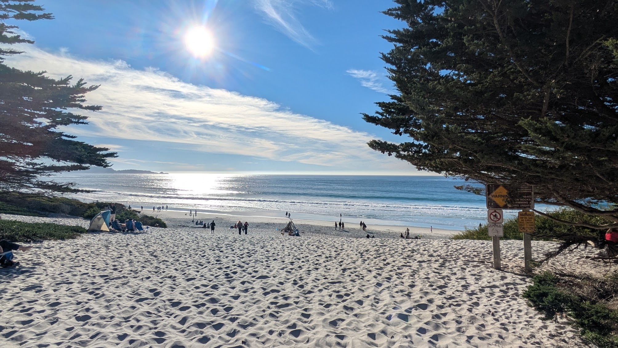 カーメル・ビーチ: 通りの突き当たりにある真っ白な砂浜のビーチ。夕日の名所です。
