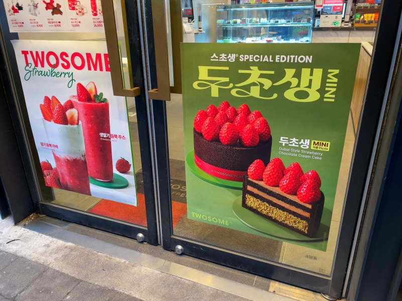 ドゥチョンクの人気は街を歩いていてもわかるほどです。韓国のスターバックスでは1月30日からソウル市内の6店舗のみでドバイもちもちロールを販売し、開店と同時に売り切れになってしまうほど。カフェチェーン店のA TWOSOME PLACEではドバイチョコケーキのドゥチョセンを販売し、すぐに予約終了に。ベーカリーチェーン店のパリバケットでもドバイもちもちボールを販売し、売り切れ続出しています。今は手に入ったら、ラッキーぐらいの人気商品です。