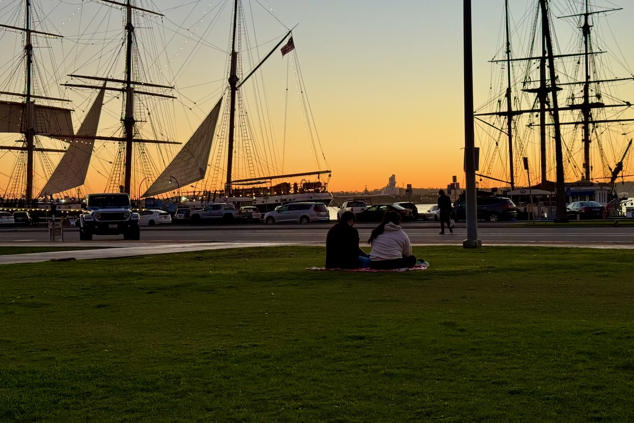 早朝便でサンフランシスコからサンディエゴ到着初日。移動の疲れを感じる間もなく、気温16度のこの街はすぐに「歩けて楽しい」場所だと教えてくれました。空港から市バスでホテルへ向かい、朝の静かなリトルイタリー、昼の賑やかなガスランプ、そして夕暮れのウォーターフロント。昼も夜もタコス。それでも不思議と飽きないのは、ここがサンディエゴだからなのです。