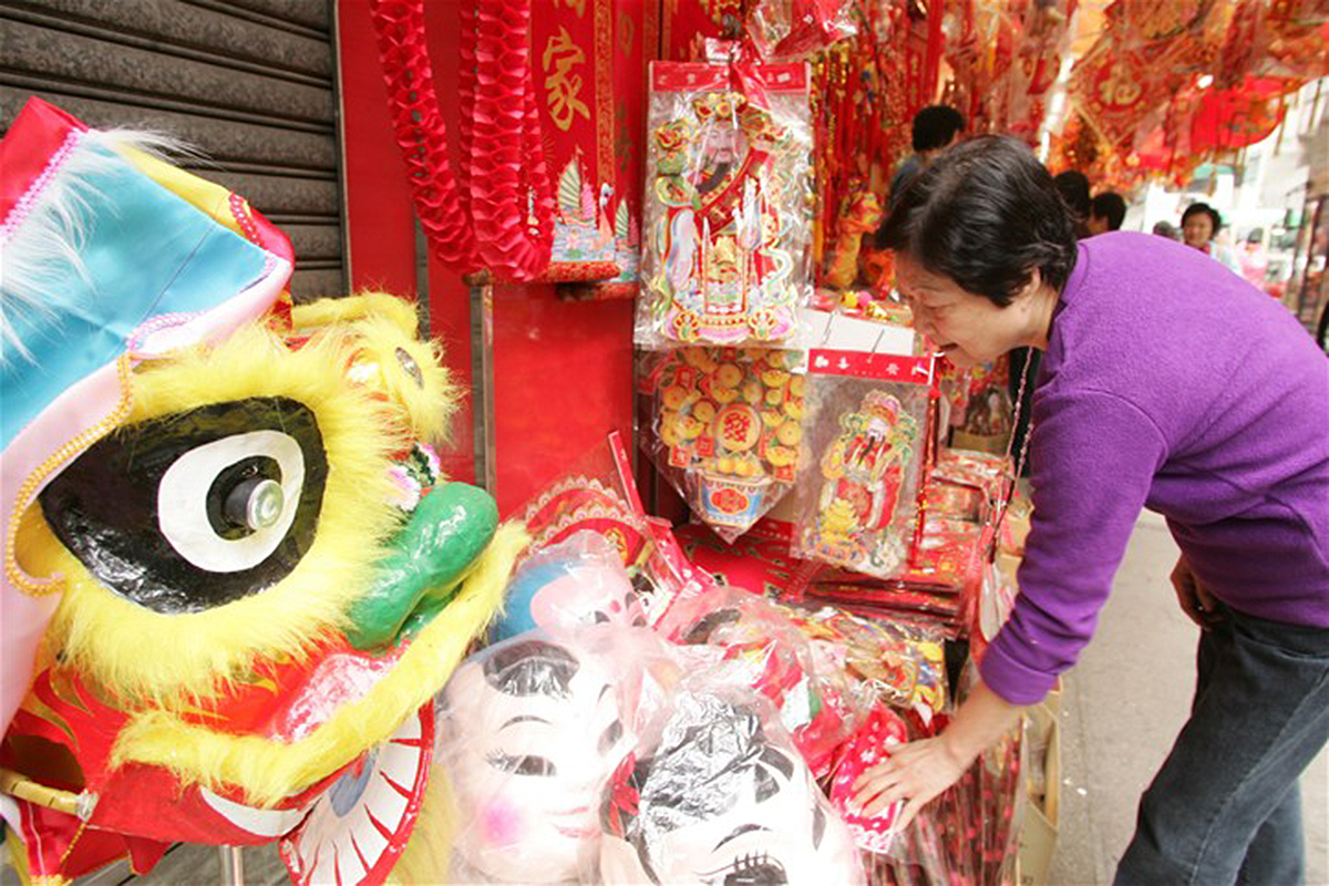 日本の正月と同じように準備期間があります。2月11日から17日までまず、銅鑼湾(Causeway Bay)の維多利亞公園(Victoria Park)、旺角(Mong Kok)の花墟(Flower Market)など14カ所で「年宵市場(Lunar New Year Fairs)」という、夜市が開かれます。香港市民は「五代同堂」…ツノナスと呼ばれるオレンジ色の植物を買う人が多いです。それだけではありません。旧正月用の飾り物、風車、ぬいぐるみなどいろいろなものが売っているので、行くだけで楽しめると思います。