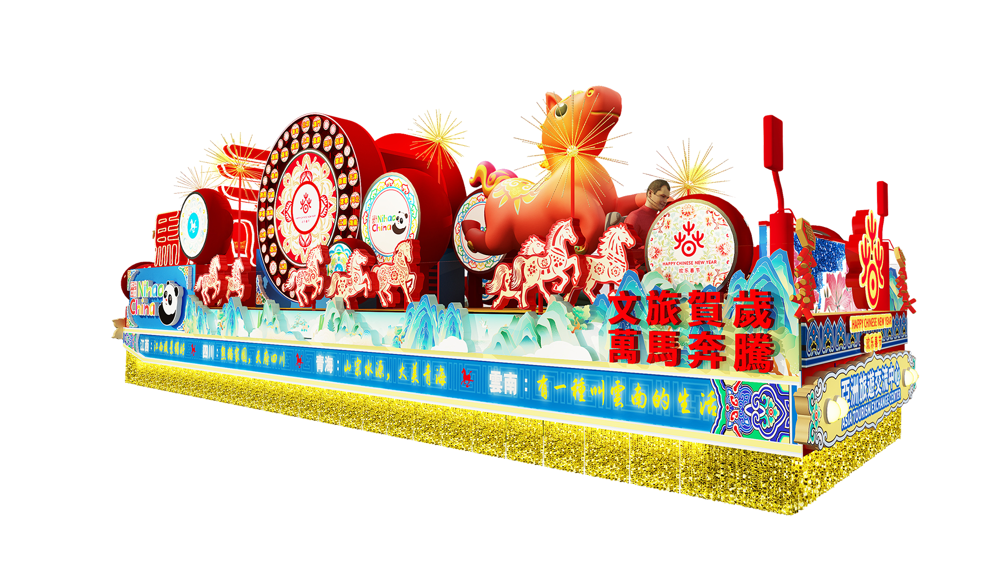 初日の夜は、20時から21時45分まで尖沙咀(Tsim Sha Tsui)の目抜き通りで行われるナイトパレード「國際匯演之夜(International Chinese New Year Night Parade)」が行われます。今年のテーマは「BEST FORTUNE. WORLD PARTY.」。今年の干支である馬をテーマした山車などが12台登場するほか、スペイン、イタリア、カナダ、フランス、トルコ、エジプトなど計16のパフォーミングチーム(うち13が新規)が会場を盛り上げます。