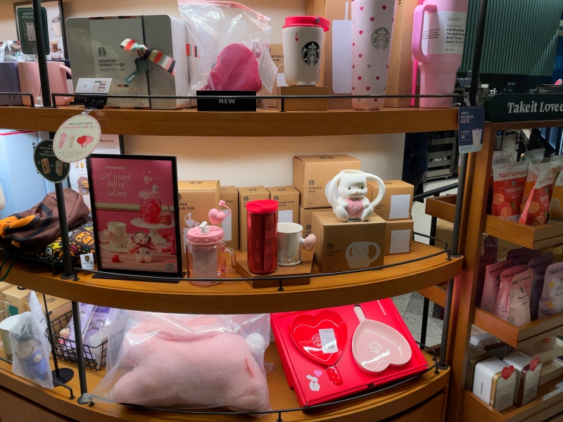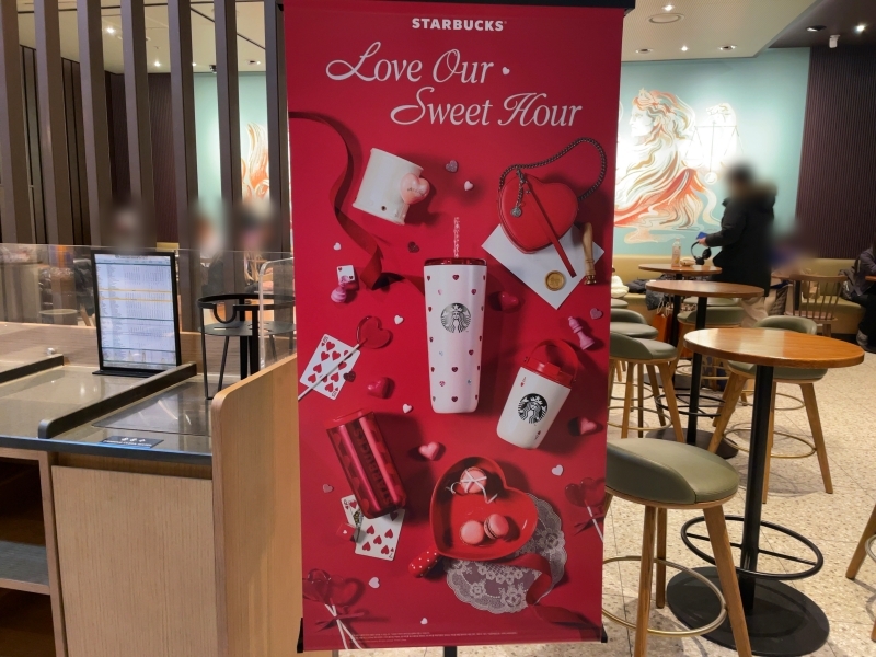 スターバックスコリアでは赤やピンク、ハートのかわいらしいバレンタインデー商品を販売中です。期間限定商品ですので、お土産にいかがでしょうか。