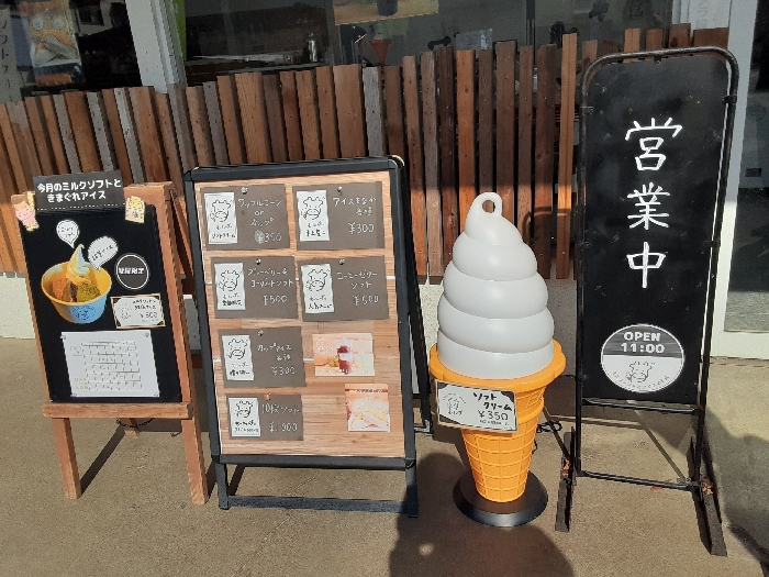 ソフトクリーム(350円)カップ、コーンと選べますが、個人的にソフトクリームはコーン!! と思っているのでコーンでいただきました。季節的なこともあるのかも知れませんが、やわらかめ感あるソフトクリームではなくしっかりとした感があるソフトクリームでがぶりと頬張ると口のなかいっぱいに広がる濃厚な味わい!! 鳥取県で食べていた大山乳業のソフトクリームを思い出す濃厚たまらぬ味わい!! そして、ワッフルコーンのガリガリ香ばしい食感がたまらな~い!! あっという間にごちそうさまでした。