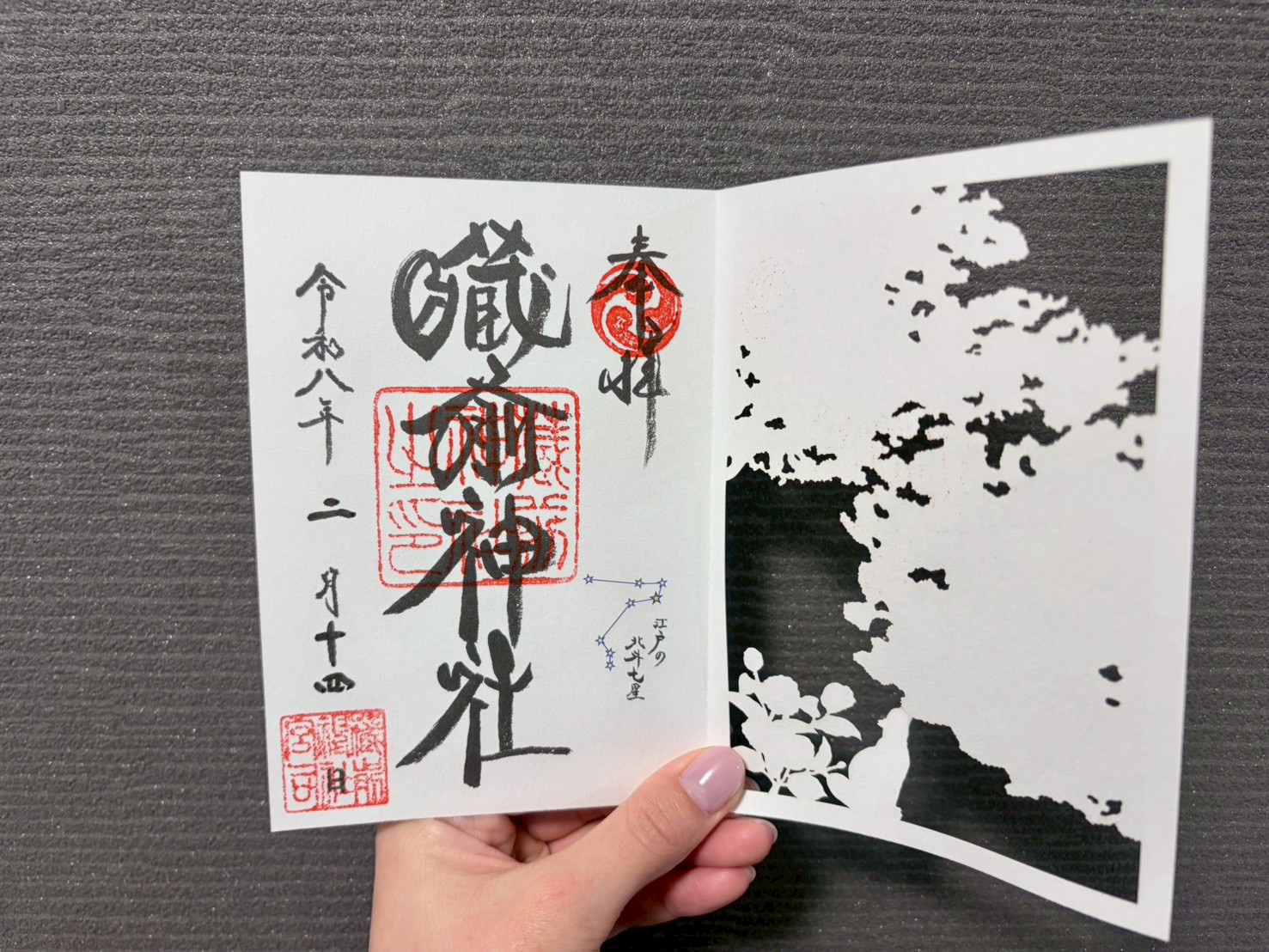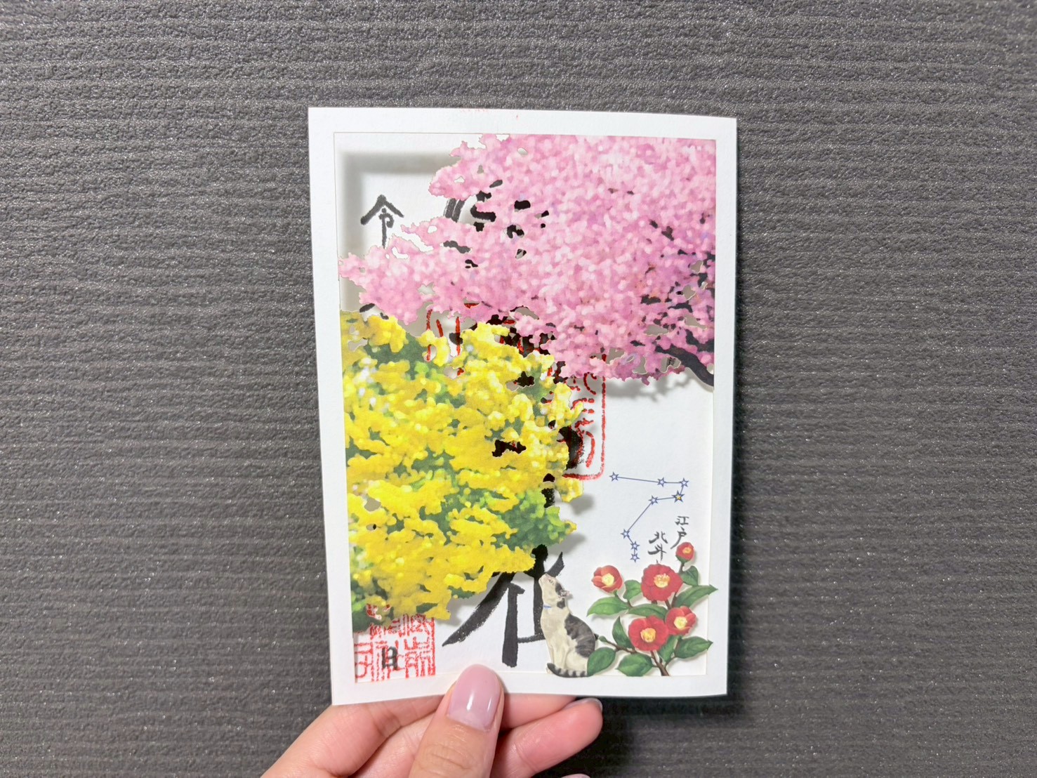 社務所でお伺いしたところ、例年は2月下旬にミモザが満開となり、3月初頭には桜も咲き始めるとのことです。ただし、その後1週間ほどで雨が降ることが多いため、両方が満開の状態で見られる期間は短いそうです。ミモザ・桜の開花とコラボレーションの時期に合わせて、特別御朱印も頒布されています。こちらの神社の看板猫さん ポン太くんがミモザと桜に戯れている姿が大変可愛らしい御朱印です。参拝時にはぜひチェックしてみてください。
