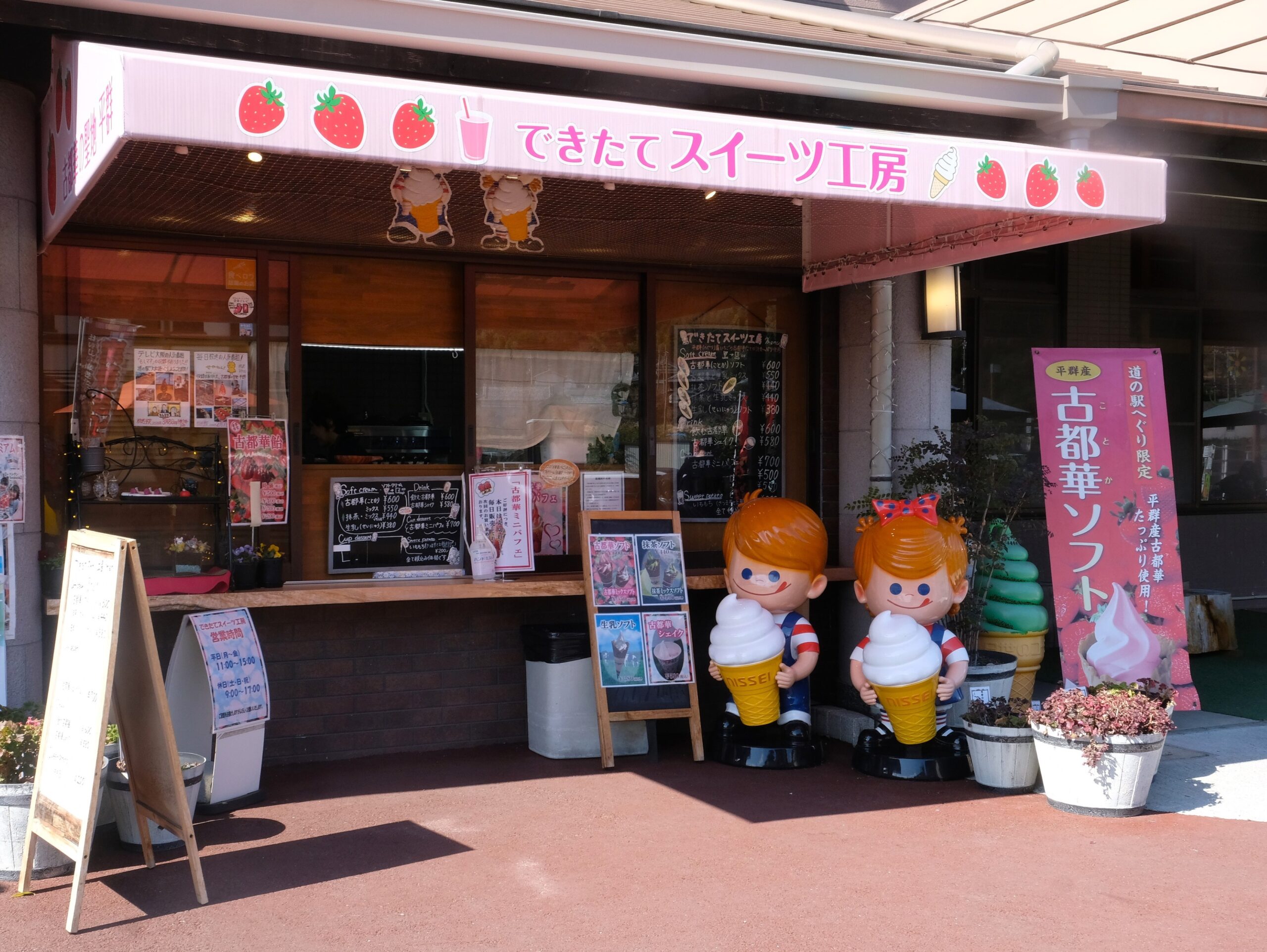 道の駅ふれあい広場にある「できたてスイーツ工房」では、予約不要で「古都華ミニパフェ(700円)」が販売されています。