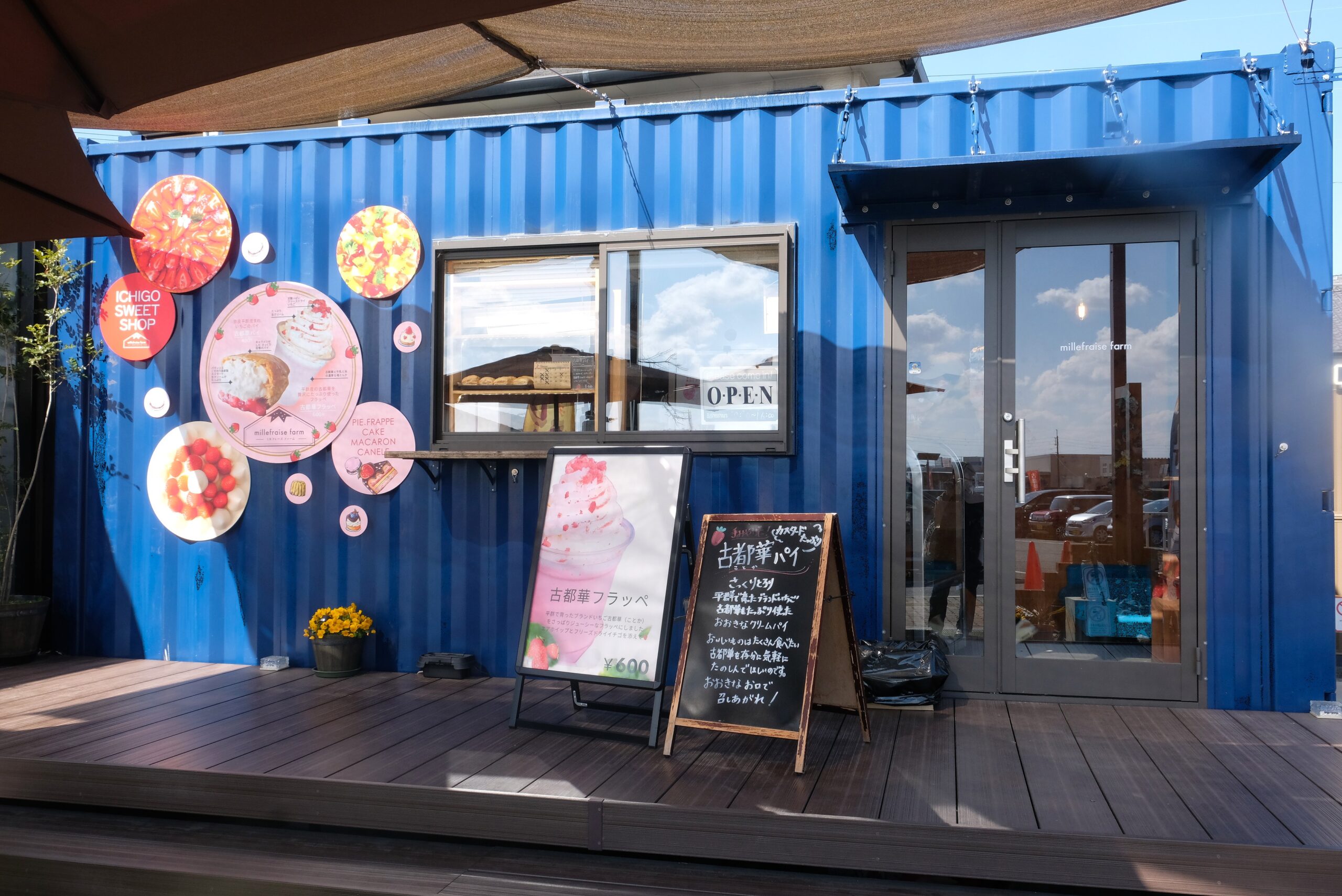 また、ふれあい広場にあるmille fraise farm(ミルフレーズファーム)では、いちご農家とパティシエの兼業を目指す店主の絶品スイーツが楽しめます。古都華を使ったショートケーキ、タルト、チーズケーキ、パイなどがショーケースに並び、どれにしようか迷ってしまいます。