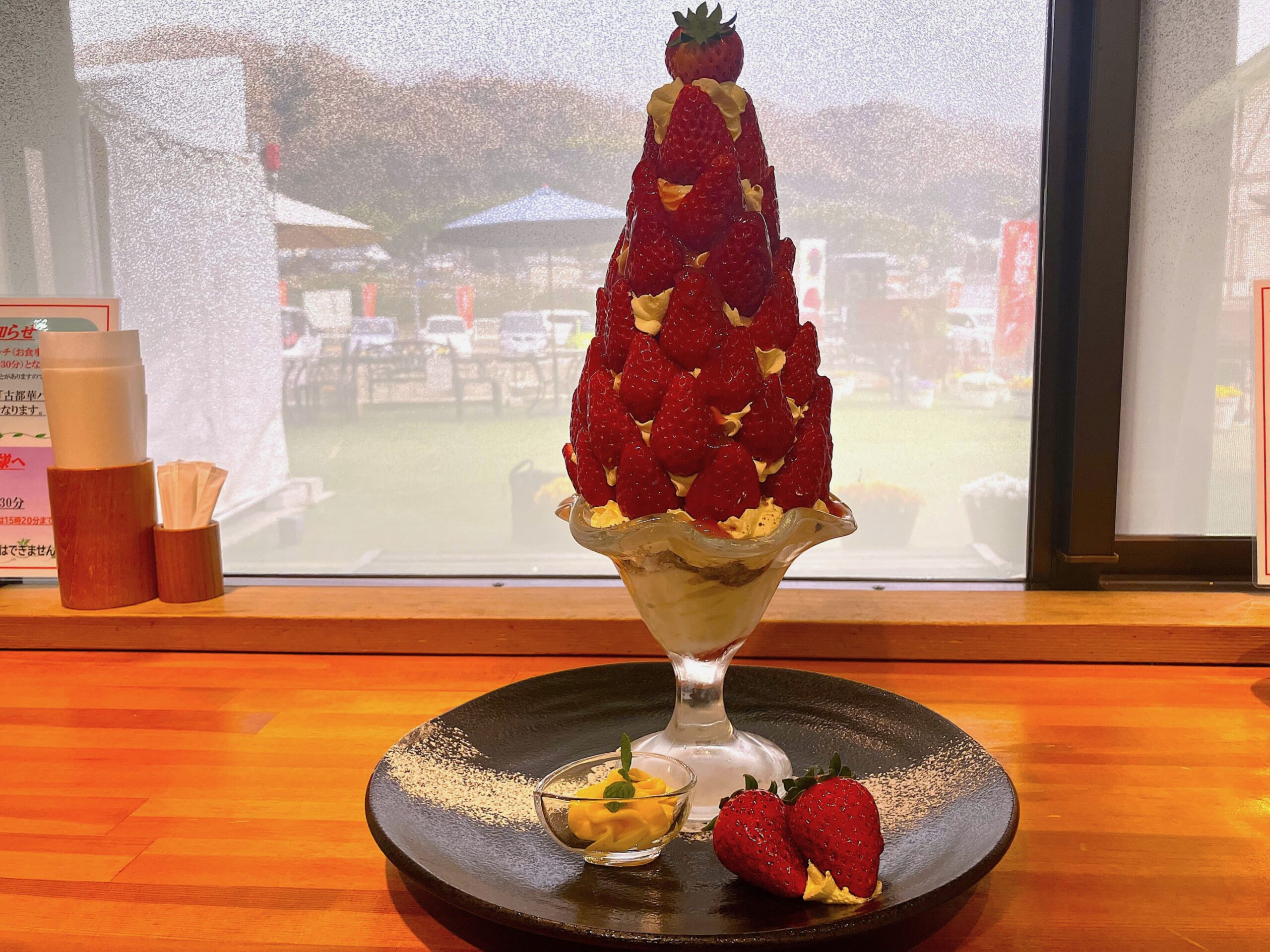 産地に近い場所で、収穫期のいちごをそのまま味わえる。それはまさに、産直ならではの鮮度と贅沢さを同時に楽しめる体験です。観光地のカフェとはまた違う、ローカルな空気感のなかでいただくパフェは、ひと味違った旅の楽しみになります。