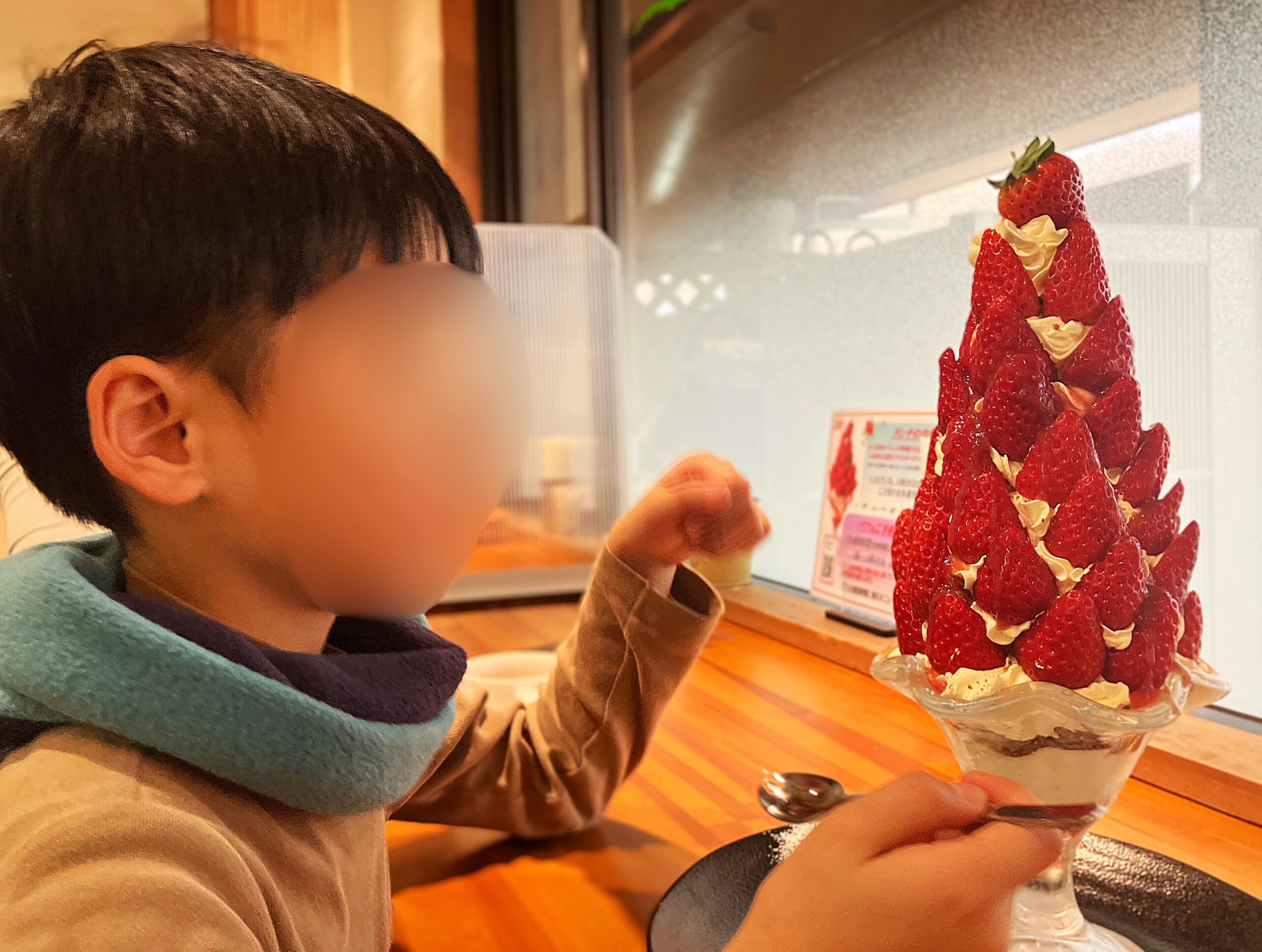 グラスいっぱいに積み重ねられた古都華は、見た目の華やかさだけでなく、ひと粒ごとの味の濃さが印象的。甘みがしっかりとしていながら後味はすっきりしていて、“主役はいちごそのもの”だと実感できるパフェです。食べ進めるごとにアイスや生クリーム、ソースとのバランスも変化し、最後まで飽きずに楽しめる完成度の高さも魅力だと感じました。