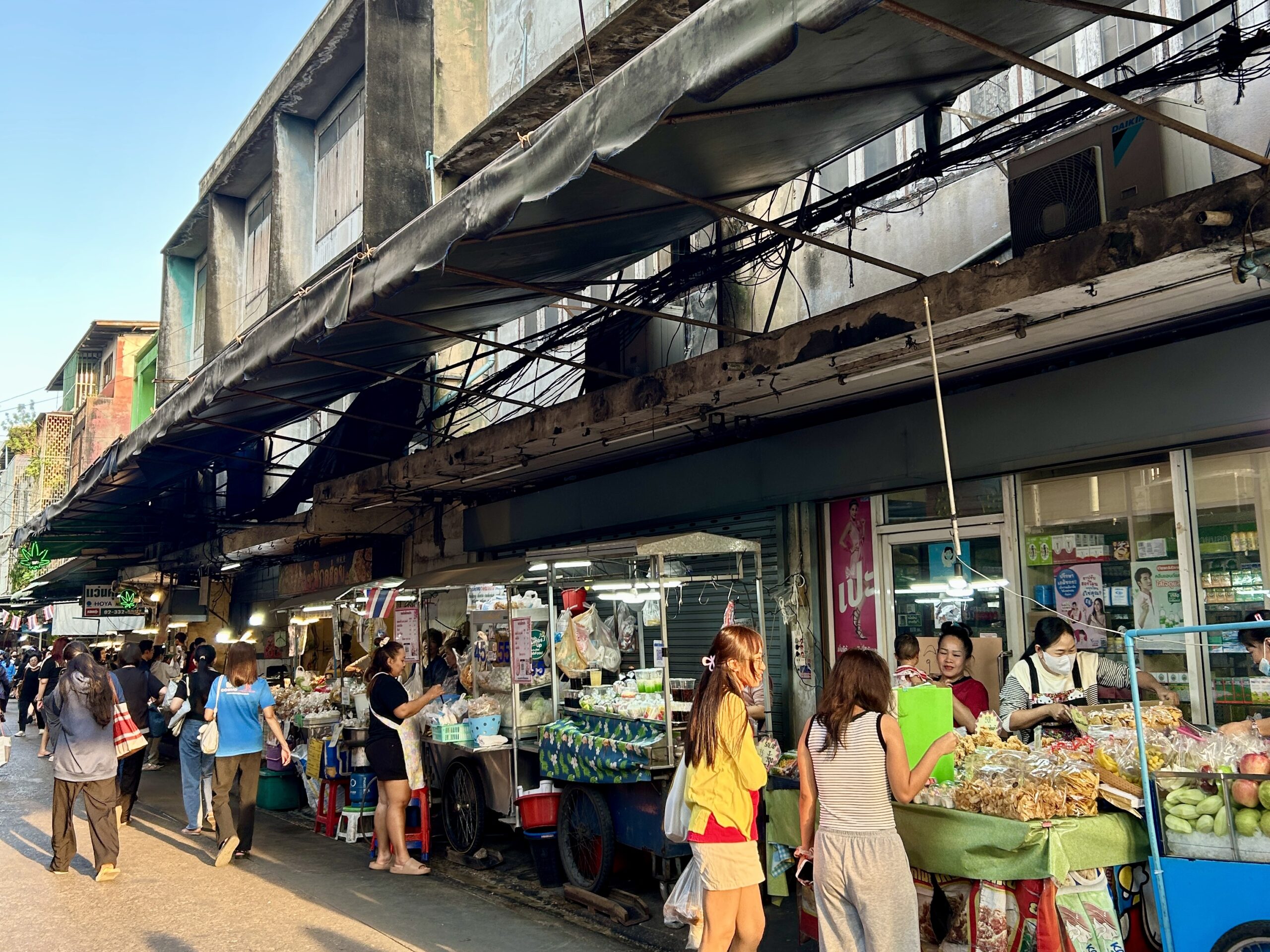 朝から屋台が並び、タイ料理の食堂や雑貨店、青果、生鮮食品などが売られ、夕方になると仕事帰りのタイ人でかなりの活気に。ローカル感満載、観光地とはひと違うバンコクの魅力を感じることができます。