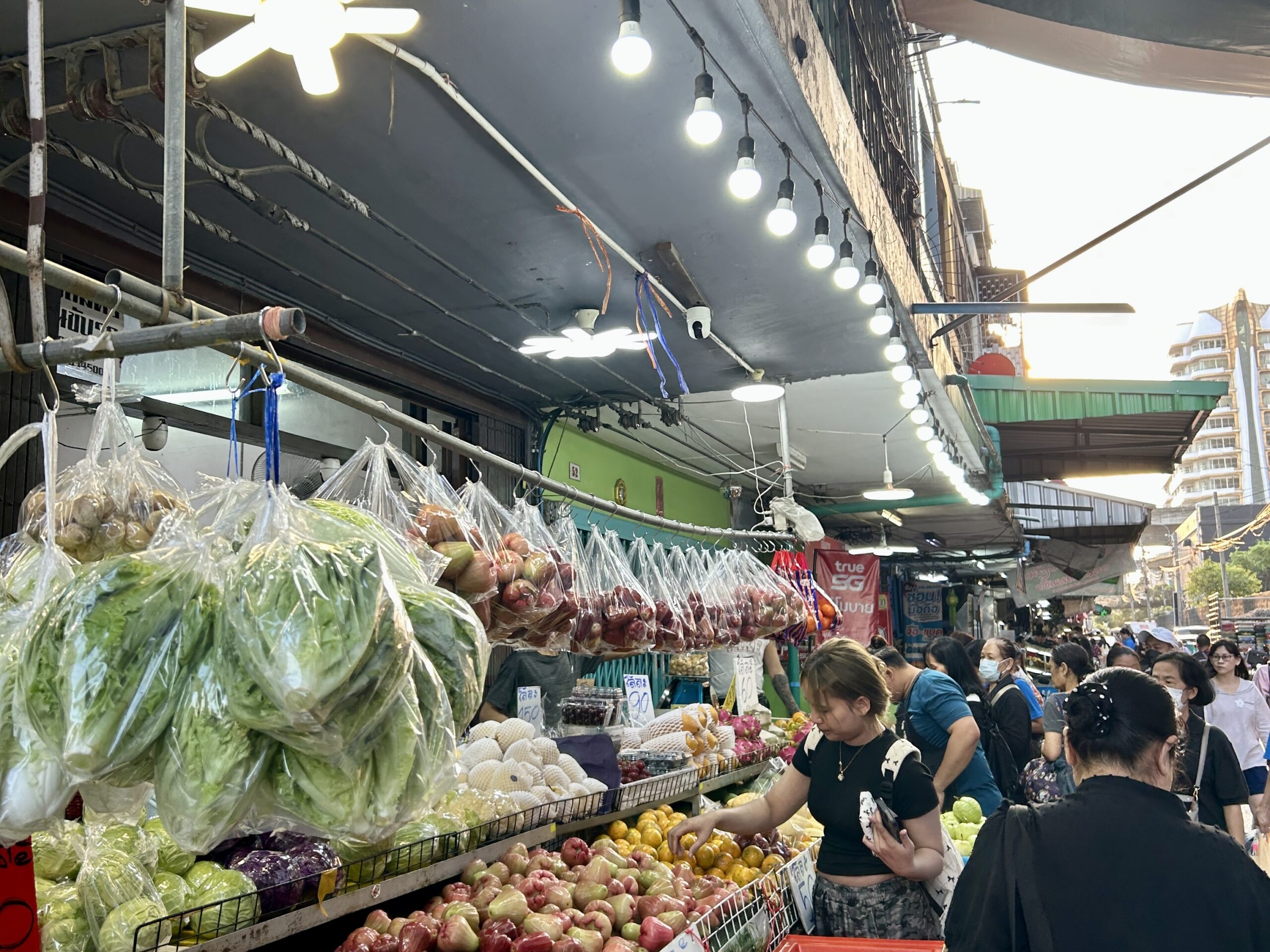 私はよく、ここでフルーツを買っています。すごく新鮮でフレッシュ。カットされたパインやメロン、スイカなどを売っている屋台もあるので食べ歩きもよし、テイクアウトして部屋で食べるもよし。季節によってさまざまなフルーツが並びます。さすがフルーツ王国! BTSの駅から近くアクセスもいいので、ぜひ一度足を運んでみてください。