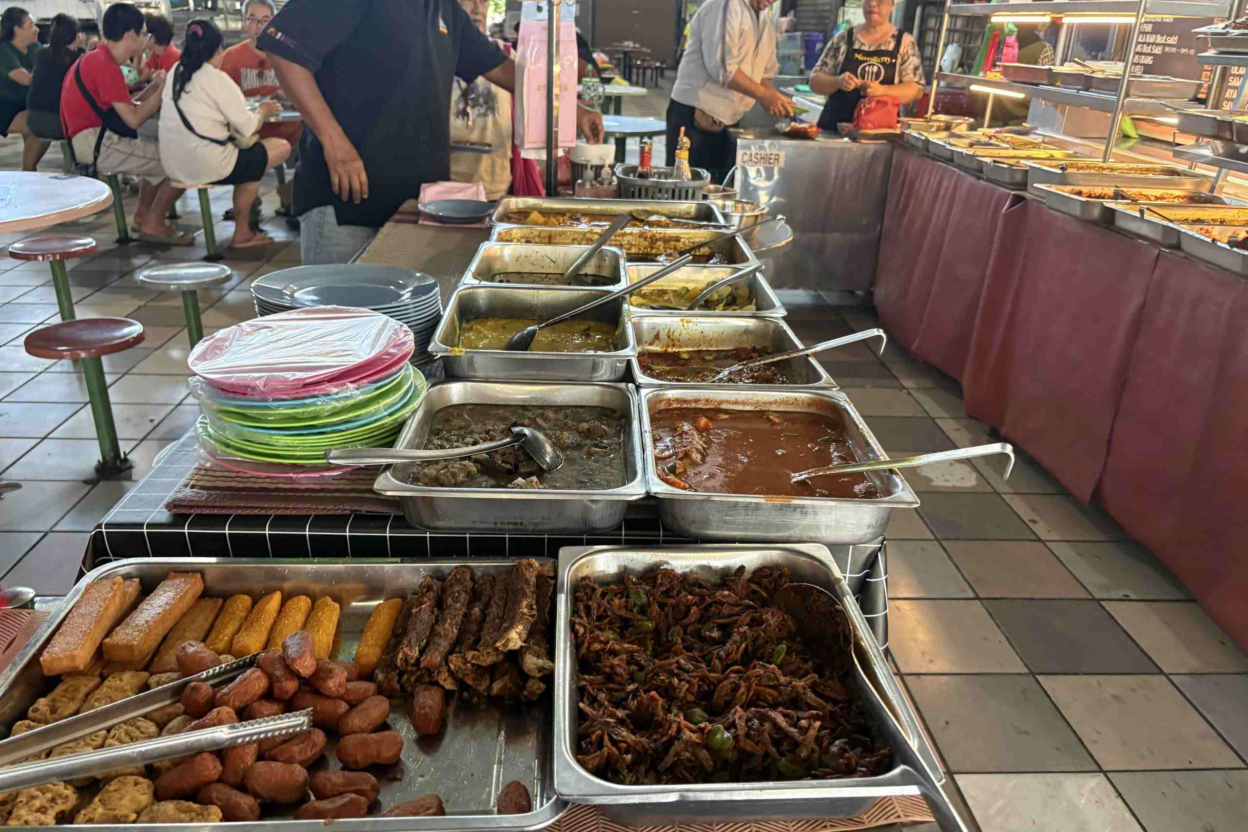 今回は、バヤンバルフードコート(Bayan Baru Market Food Court)内にある「Amieza Nasi Melayu」に行ってきました。こちらは自分で好きなだけよそう形式のナシカンダー屋さんです。