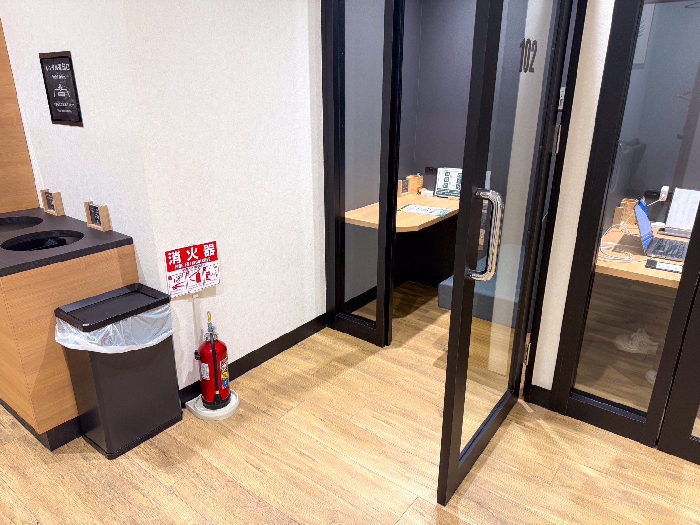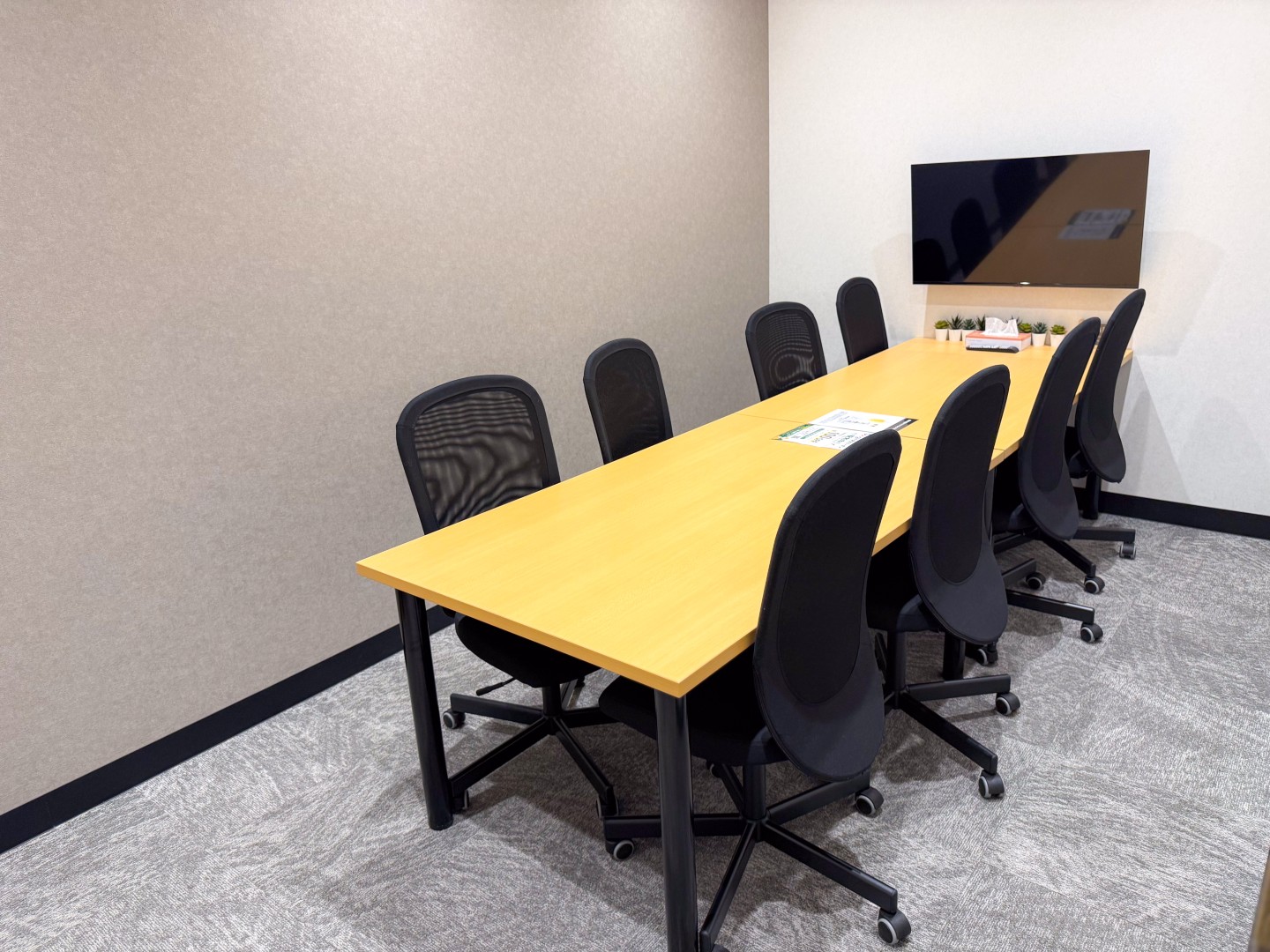 リラックスできる空間のすぐ隣、エントランスの左手から奥にかけては、対照的に仕事へ集中できるコワーキングスペースが広がっています。PCを開くのに適したオープンの作業机から、ゆったりと腰掛けられるソファ席、さらにはWeb会議や打ち合わせに利用できる会議用の個室まで揃っています。フロアの奥へと進むと半個室も用意されており、周囲の視線を気にせずに静かに休むことも可能です。「しっかり仕事をしたい」というニーズにも確実に応えてくれる設備が整っています。