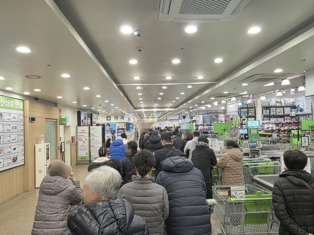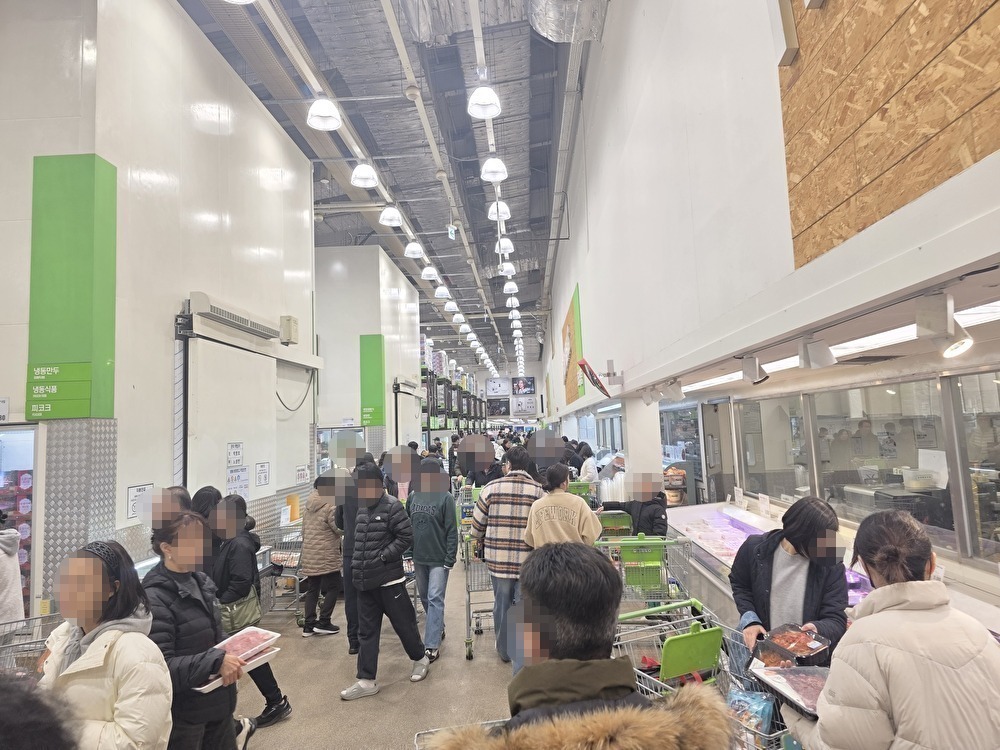 旧暦1月1日の前日に大型スーパーに行ってきたのですが、人が多いことを見越して10時オープンの大型スーパーに9時40分に到着したのですが、すでに列ができており、少しして後ろを見るとずらりと列ができていました。