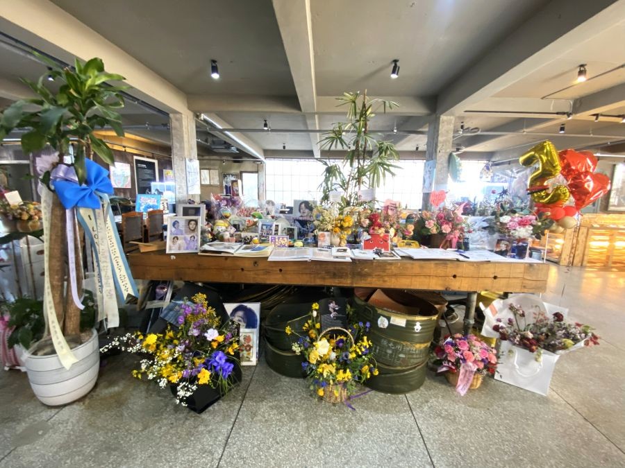店内に入ると、すぐにアーミーからのプレゼントが飾られており、ファンが描いたジミンの絵画なども飾られています。