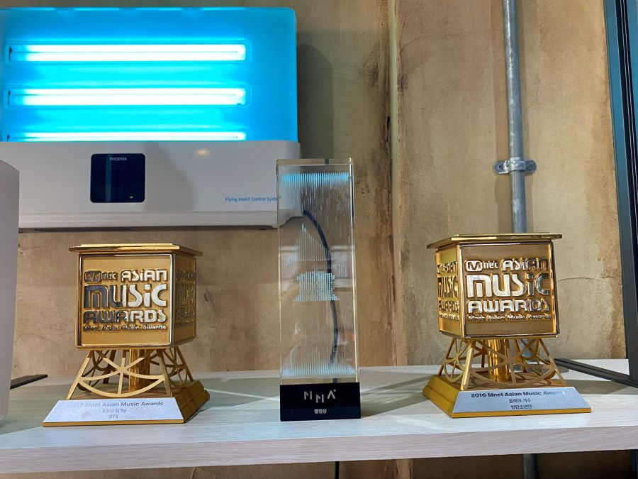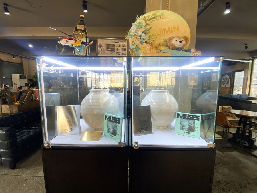 また、サイン入りのジミンソロアルバム「FACE」やMnet ASIAN MUSIC AWARDSでの受賞トロフィーなども飾られています。