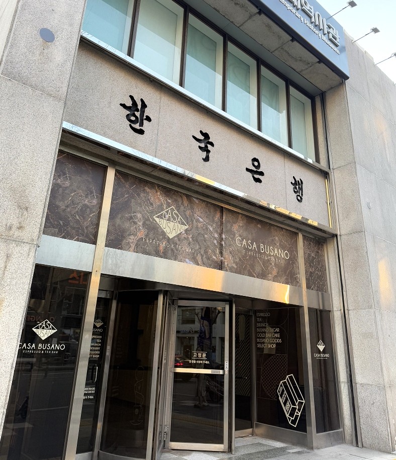 「韓国銀行」と書かれた釜山近現代歴史館本館の1階に、「CASA BUSANO」釜山近現代歴史館店があります。