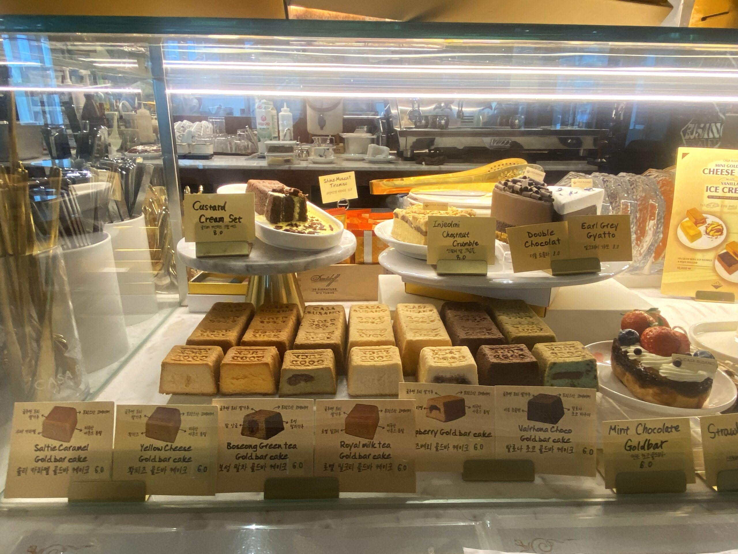 ショーケースには、釜山近現代歴史館にあるということでゴールドバーにちなんだ「7種類のゴールドバー」スイーツなどが販売されています。