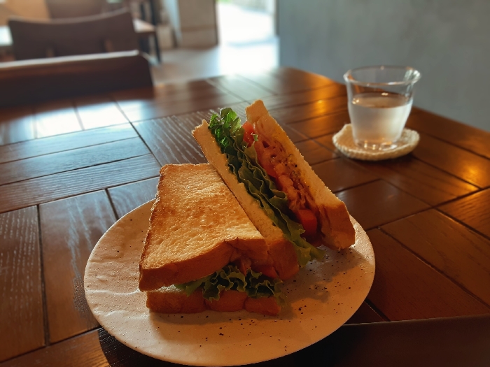 オーダーを受けてから調理をしんさるけぇ出来立てをいただけるしあわせ♪ サンドイッチをかぶりつけばシャキシャキレタスにじゅんじゅわ~なベーコンと食パンの食感が心地よく嚙みしめるほどに素材の味わいがパァと口のなかいっぱいに広がってトマトのスッキリ感がいい仕事しとんさって「おいしい」に。