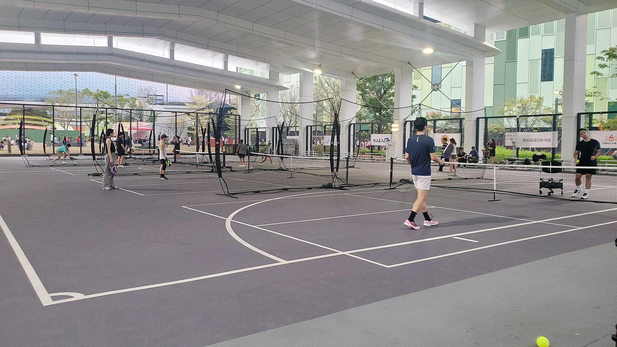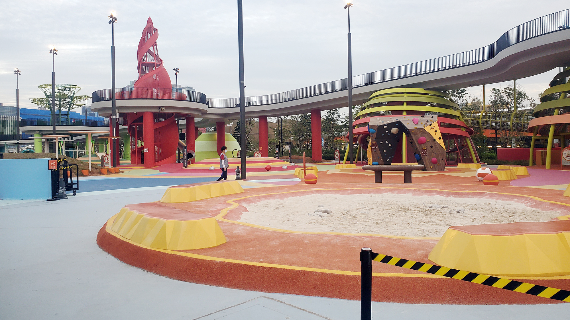 ここは、28ヘクタールという巨大な施設として造成されました。ラグビーやサッカーなどのスポーツの試合や有名アーティストのコンサートが開かれる約5万人収容の巨大スタジアム「主場館(Kai Tak Stadium)」を中心に、その周辺は市民がスポーツを気軽に楽しめるようになっています。例えば、テニスコート、ビーチバレー、ピックルボール、クライミング、遊具がある子どもむけのプレイグランドなどさまざまです。