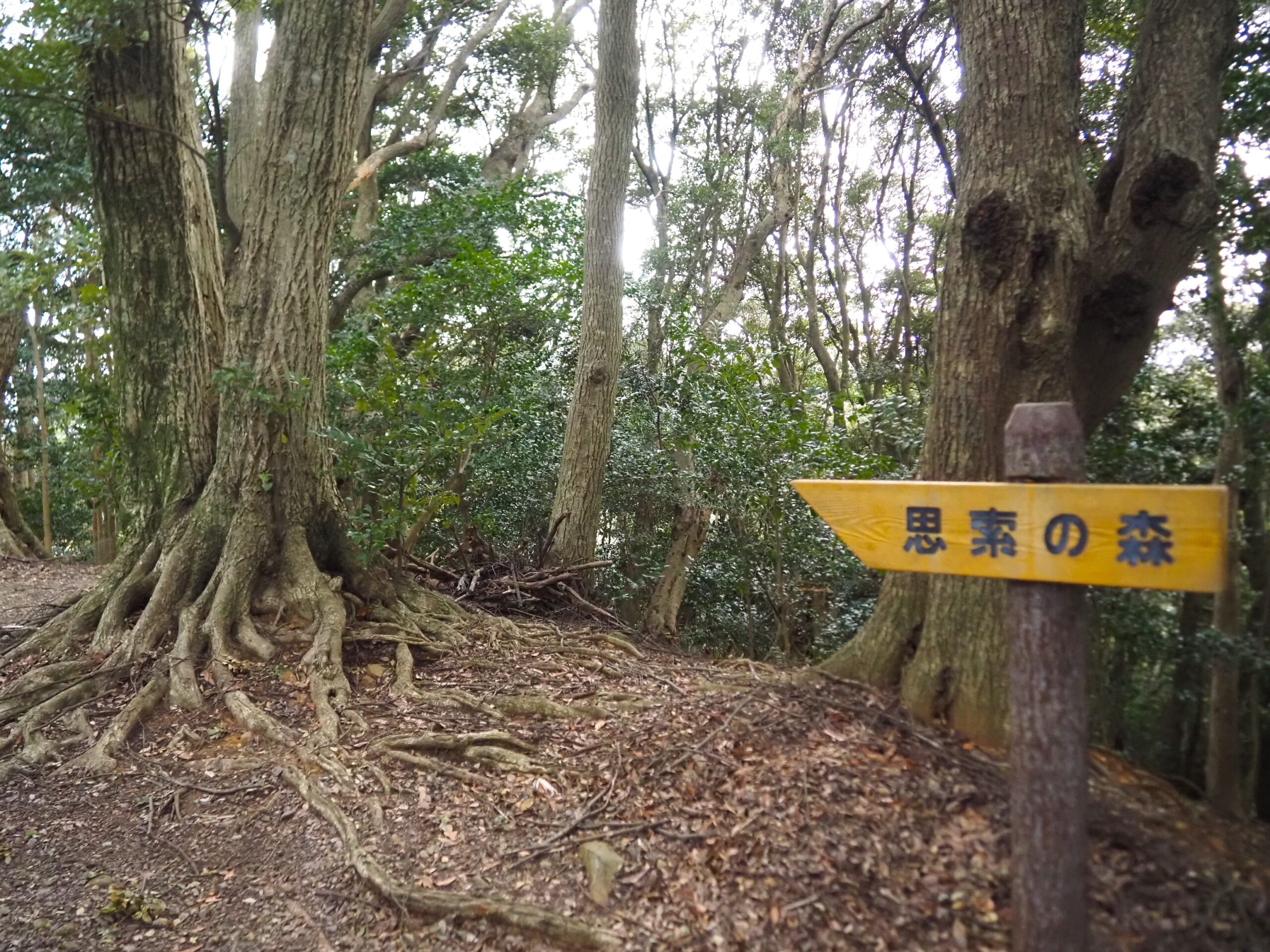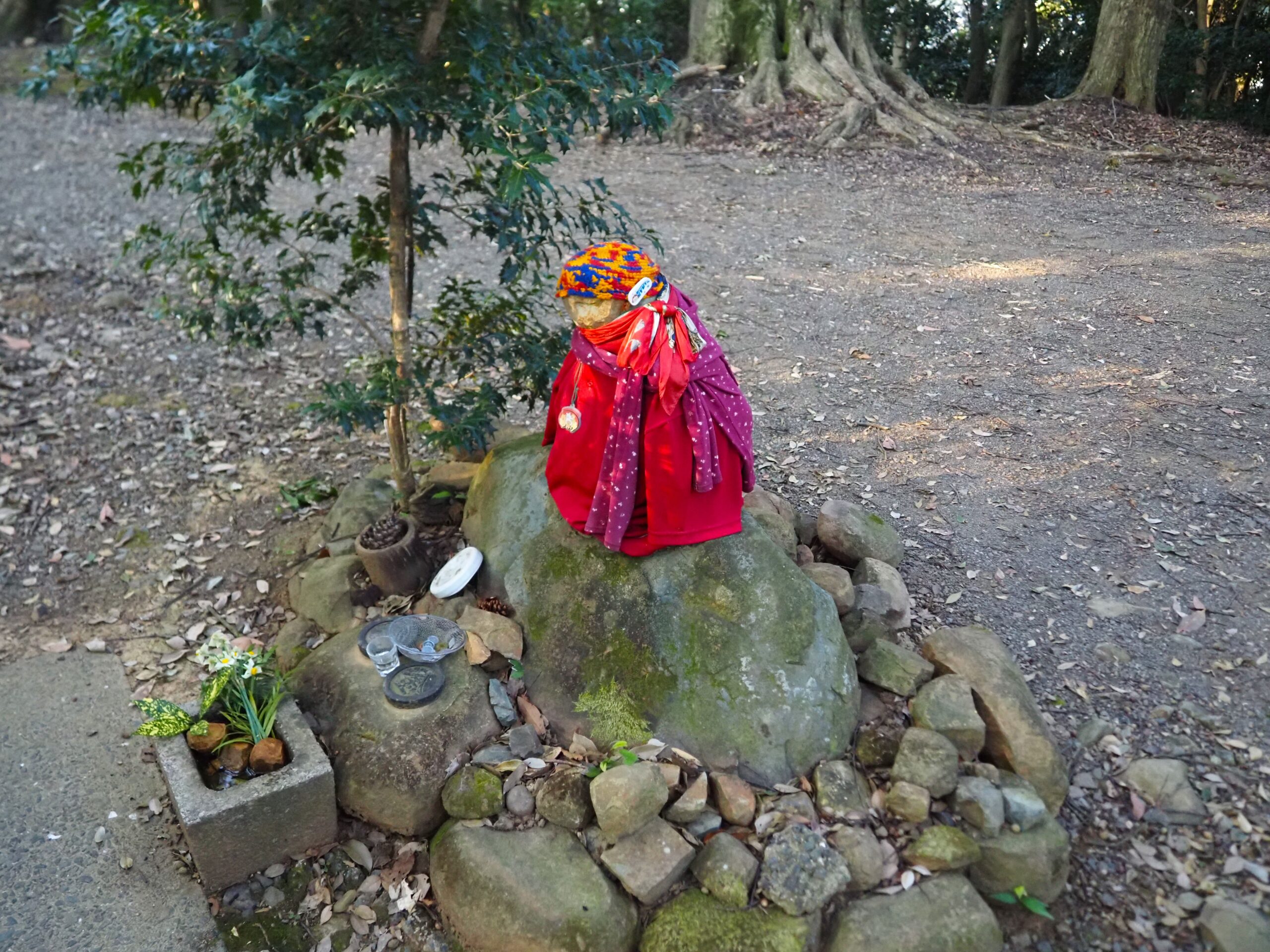 何段登ったのか分かりませんが、ゴールに近づきました。「思索の森」と表示されていますが、息切れした頭では思索どころではなく、呼吸が落ち着くのを待ちます。お地蔵さんが「よう登ってきたね」といわんばかりに迎えてくれていました。