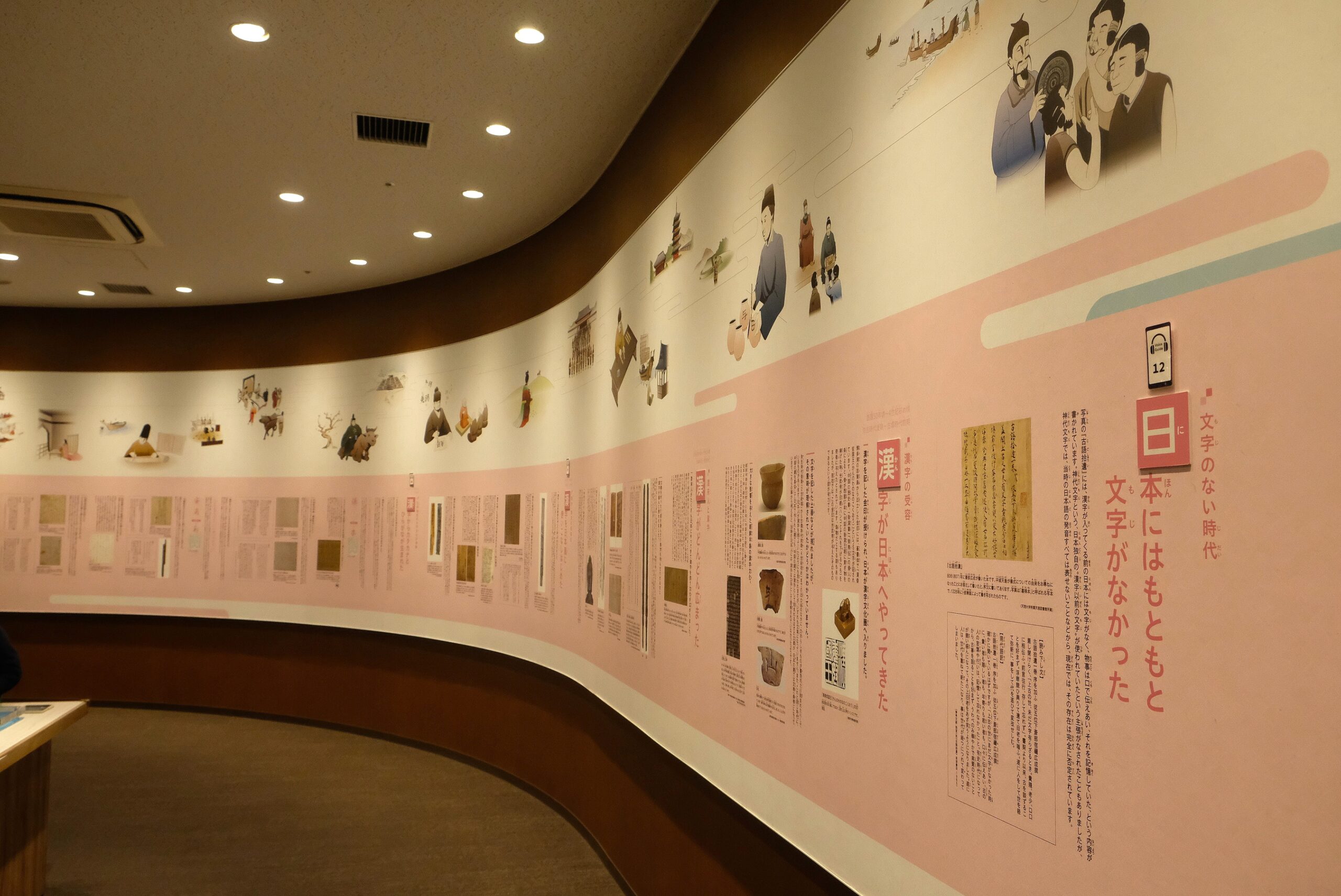 1階フロアは、漢字の歴史や文化をじっくり楽しめる展示が中心。順路に沿って見ていくだけでも、自然と漢字の世界に引き込まれていきます。