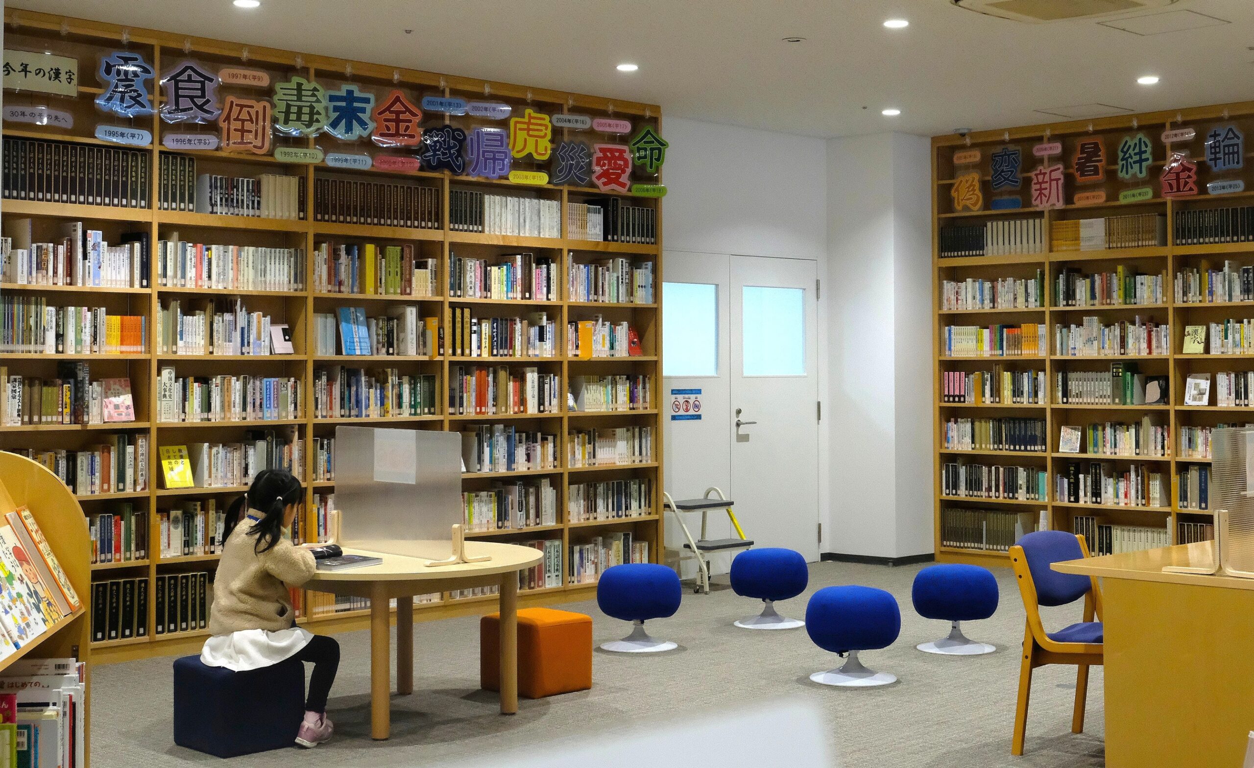 館内には、日本語や漢字についての本およそ5000冊を閲覧できる図書館も併設。子ども向けの漢字に関する本はもちろん、漢字のトリビアが載った本や専門的な本や辞典まで幅広くそろっています。気になる本を手に取っているうちに、つい長居してしまう空間です。
