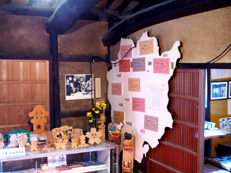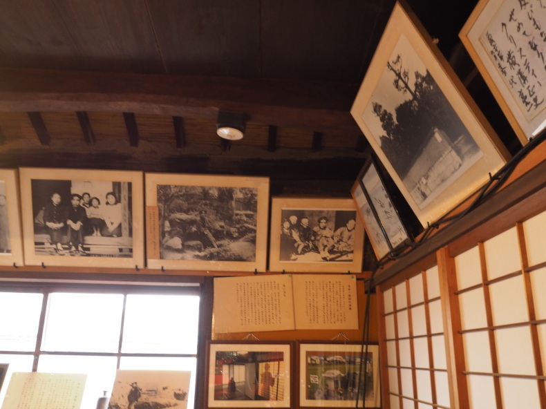 横溝正史が疎開していた3年半の写真が鴨居の上に飾られています。当時、軍部の圧力で探偵小説を出版することが出来なかったので、横溝正史は岡田地区の人と交わり農村の因習,農漁民の生活などの話を聞き作品の構想をあたためていたそうです。