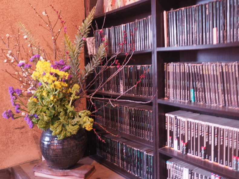 横溝正史の本の蔵書棚。文庫本ですがこんなにも作品を残されていたのですね。