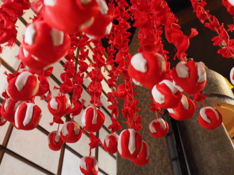 長いものでは3メートルもあります。無病息災を願う一体、2㌢にも満たない「さるぼぼ」や鶴など、縁起のいい飾りがたくさんつけられています。