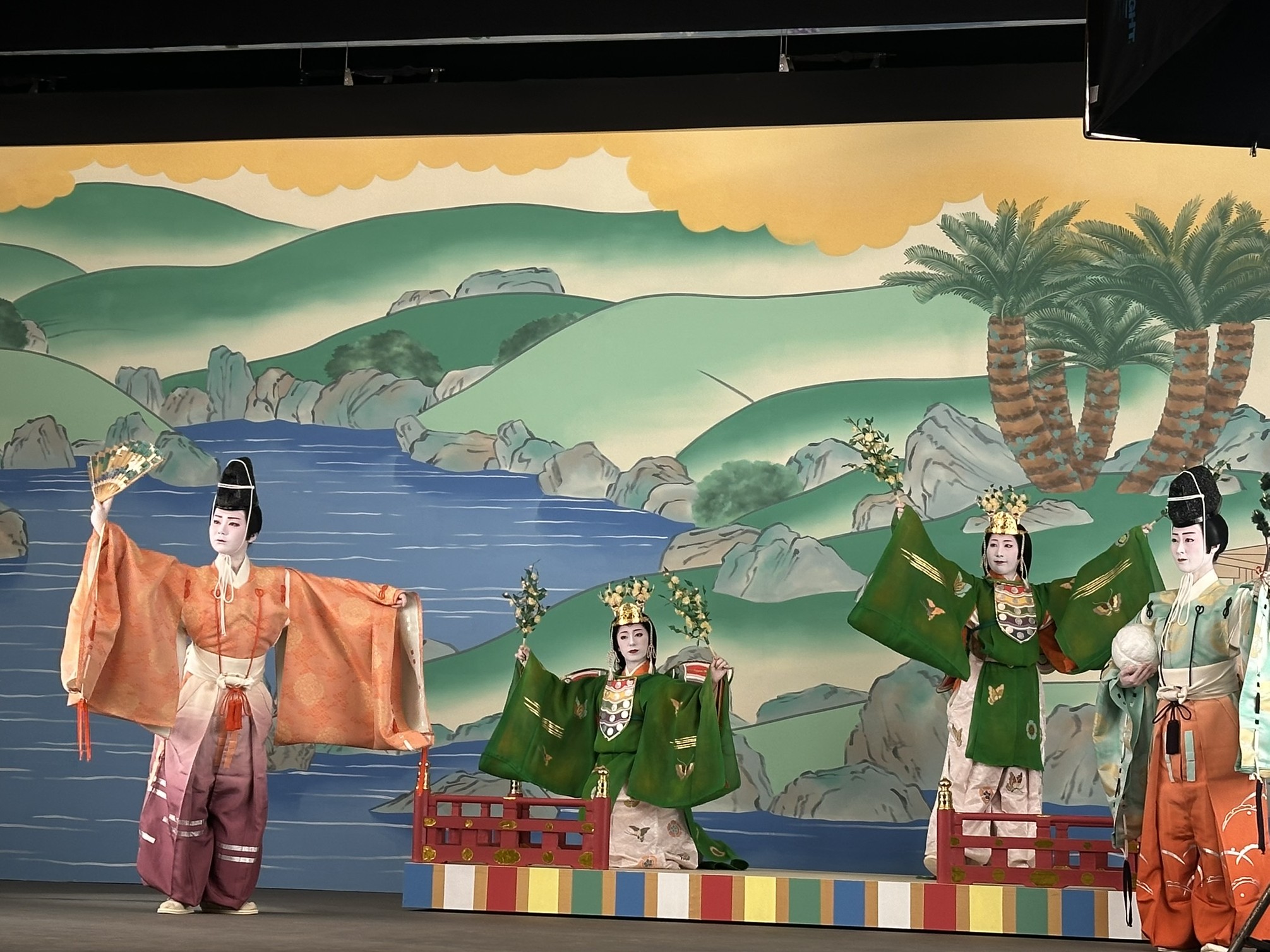 会場では、公演で使用される華やかな衣裳も披露されました。やわらかな色合いの着物に、長く流れるだらり帯、歩くたびに揺れる季節のかんざしが、春の訪れを感じさせます。