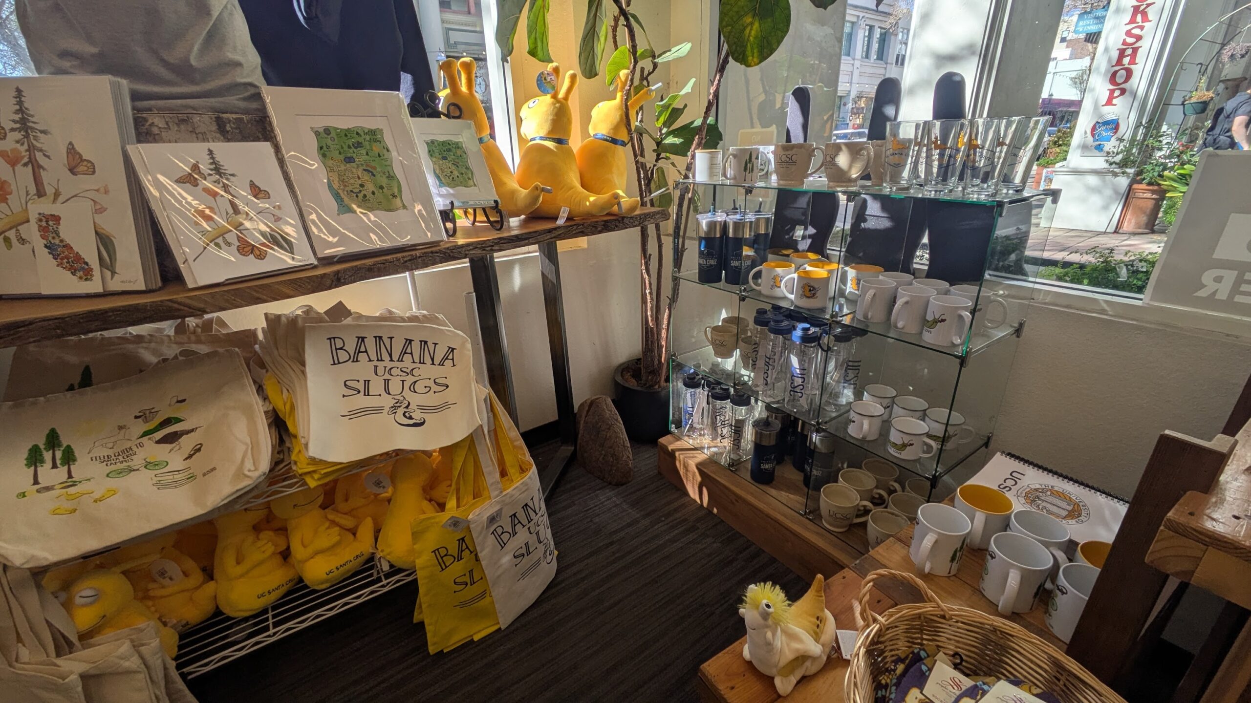 ブックショップ・サンタクルーズは、UCSC(カリフォルニア大学サンタクルーズ校)の公式ブックストアではありません。しかし、地元コミュニティと大学の強い結びつきを象徴するように、「街の視点から選ばれたUCSCグッズ」が非常に充実しています。