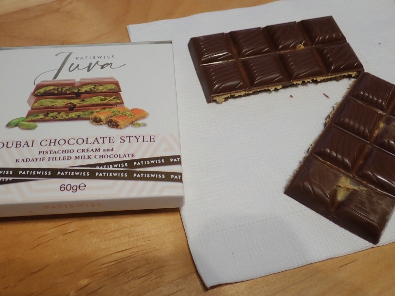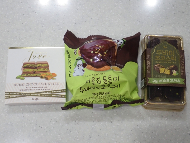 数年前から韓国で人気のドバイチョコレート。ドバイチョコレートとはカダイフ(極細の小麦麺)、ピスタチオペースト、チョコレートを組み合わせたお菓子です。大型スーパーやコンビニで購入し、日本で家族と食べてみました。