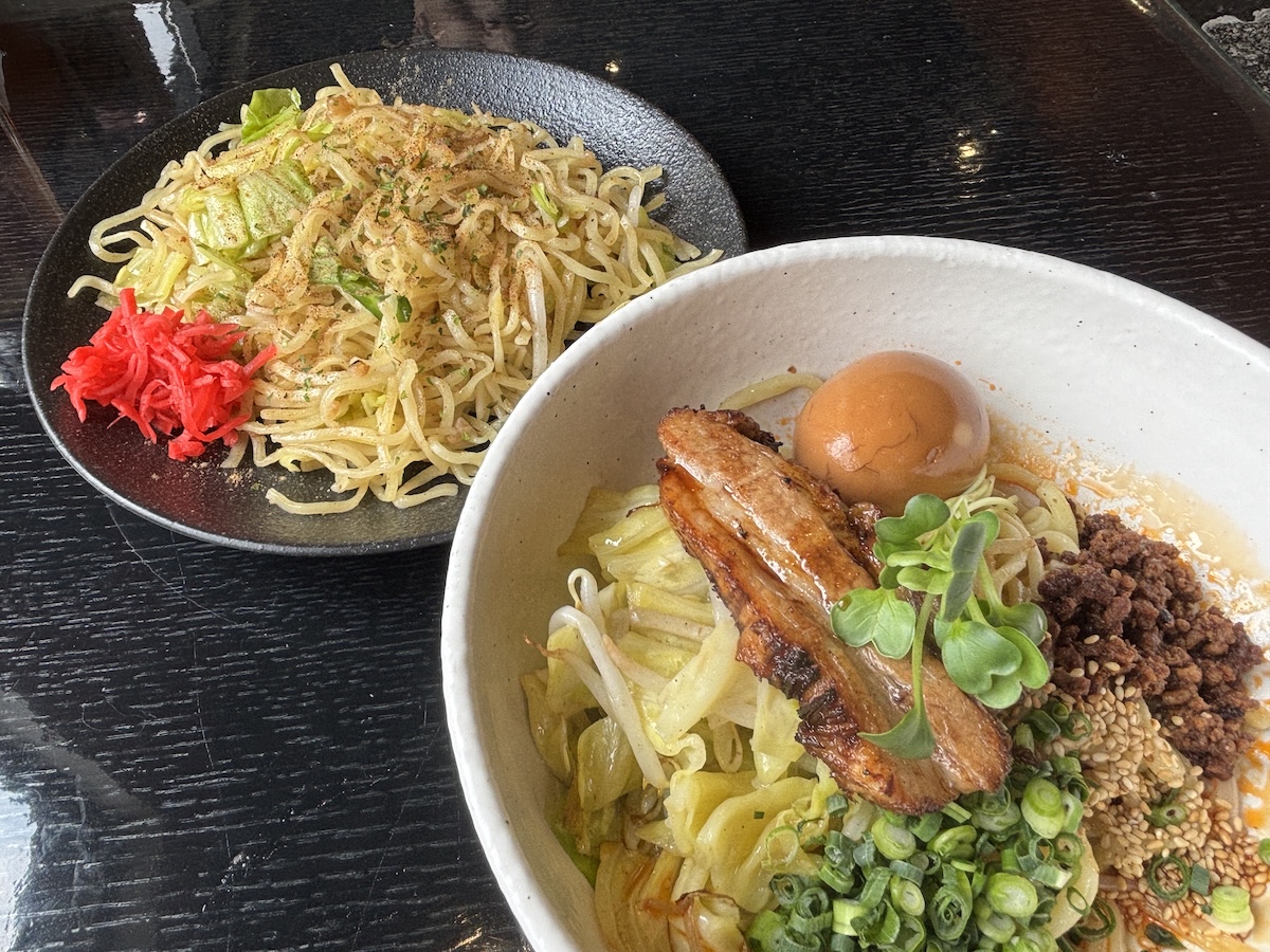 人気の生麺坦々焼きそばと、蒸し麺塩焼きそばを注文しました。生麺を使った焼きそばは初めてでしたが、普段食べている焼きそば麺とはまるで別物。つけ麺のような少し太めのもちもち食感が特徴で、坦々のタレがよく絡みます。具のチャーシューは、トロトロでジューシー、絶品です。基本の1辛で注文しましたが、後からくる少し汗をかくくらいの辛さでした。辛いものがお好きな方には、2辛、3辛を選ぶことができます。
